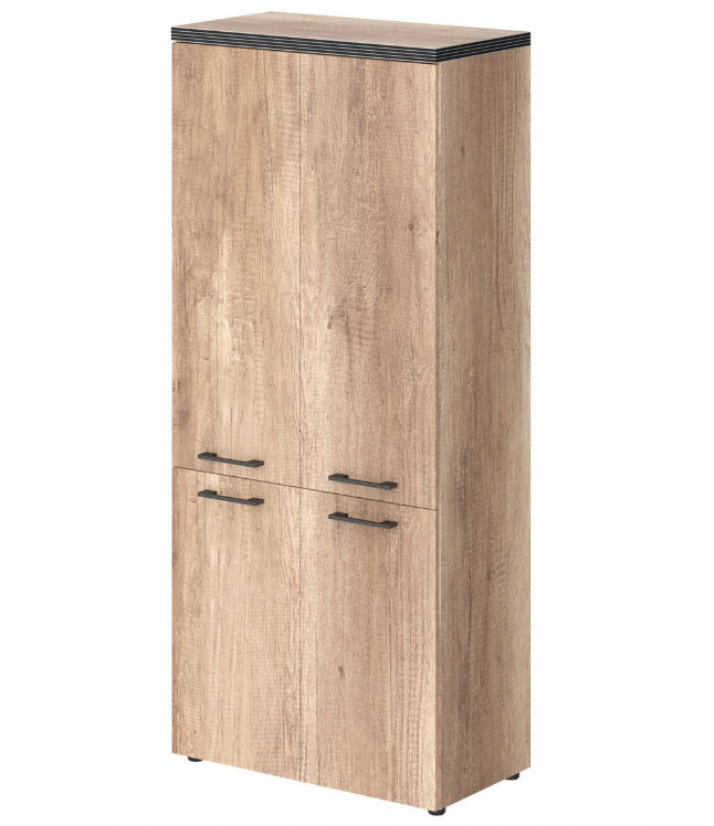 Солидный и широкий комбинированный шкаф TORR для офисного или домашнего использования. Размеры - 854х1968х452 мм. Шкаф имеет солидный верхний топ 38 мм. Все торцевые поверхности основных элементов шкафа облицованы глянцевой акриловой пленкой 2 мм с декоративными полосками внутри кромки, что придает ей стильный 3D эффект. Торцы дополнительных элементов надежно защищены кромкой ПВХ 2 мм. Двустворчатый шкаф оснащенный 5 просторными полками, которые закрываются дверцами из ЛДСП. На всех дверцах имеются долговечные и стильные металлические ручки. Конструкция шкафа оснащена прочными силовыми креплениями – эксцентриковыми стяжками. Регулируемые по высоте опоры обеспечат шкафу устойчивость на неровном полу.