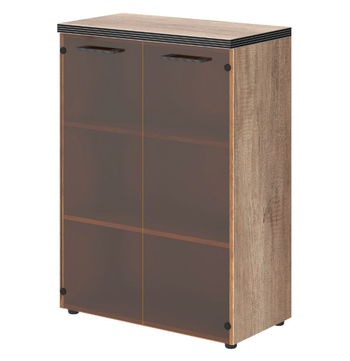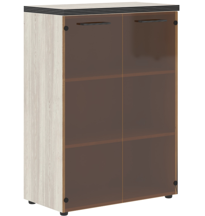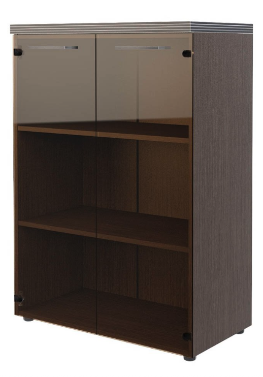 Стильный и широкий шкаф средний TORR для офисного или домашнего использования. Размеры - 854х1203х452 мм. Шкаф имеет солидный верхний топ 38 мм. Все торцевые поверхности основных элементов шкафа облицованы глянцевой акриловой пленкой 2 мм с декоративными полосками внутри кромки, что придает ей стильный 3D эффект. Торцы дополнительных элементов надежно защищены кромкой ПВХ 2 мм. Двустворчатый шкаф оснащен 3 полками, которые закрыты стеклянными дверцами. На дверцах установлены долговечные и стильные металлические ручки. Конструкция шкафа оснащена прочными силовыми креплениями – эксцентриковыми стяжками. Регулируемые по высоте опоры обеспечат шкафу устойчивость на неровном полу.