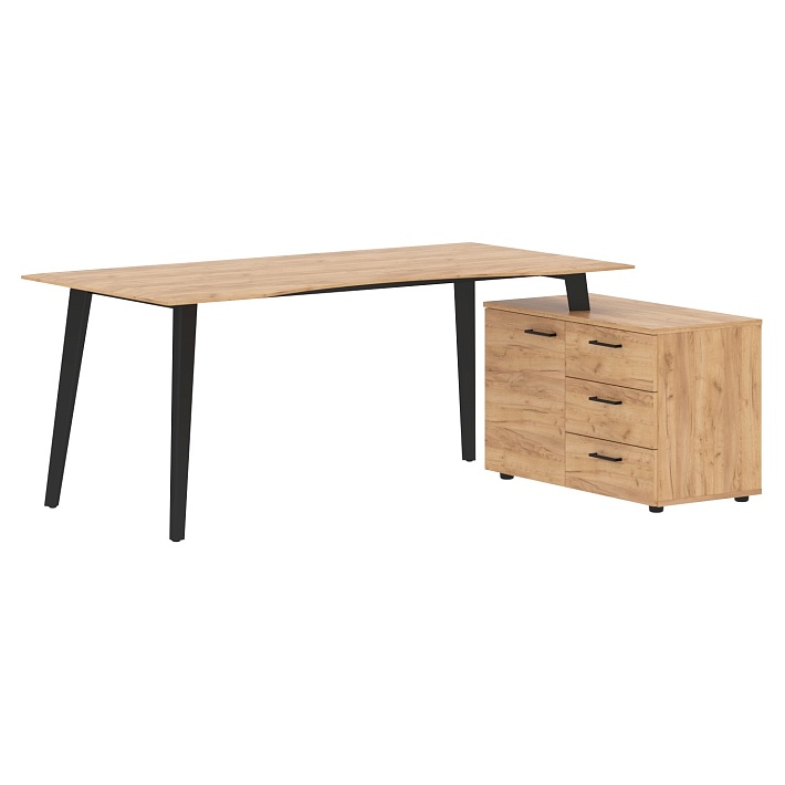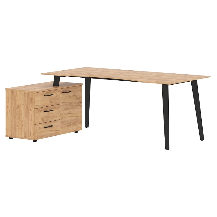 Угловой стол «JAY» – идеальный выбор для современного руководителя! Благодаря сочетанию металла и МДФ толщиной 19 мм он сочетает прочность и стиль минимализма, хай-тека и лофта. Один взгляд – и ваш кабинет приобретает черты настоящего бизнес-пространства. Удобная угловая форма экономит место, а дополнительная тумба повышает комфорт использования. Дизайн подчеркивает статус владельца, создавая атмосферу успеха и уверенности.