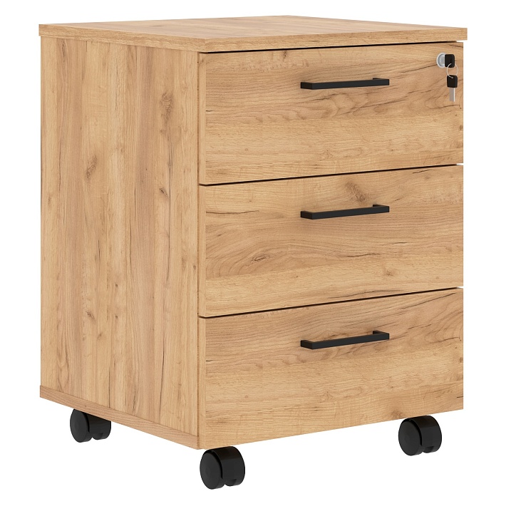 Мобильная тумба JAY – идеальный помощник в мире бизнеса! Пространство под рукой благодаря трём вместительным ящикам из прочного материала толщиной 18 мм. Современный дизайн в стиле минимализма, хай-тека или лофта гармонично впишется в любой интерьер. Закрывающийся на замок ящик обеспечит безопасность хранения ценных вещей. Легкость перемещения без ущерба удобству – ваш комфорт в каждой детали!