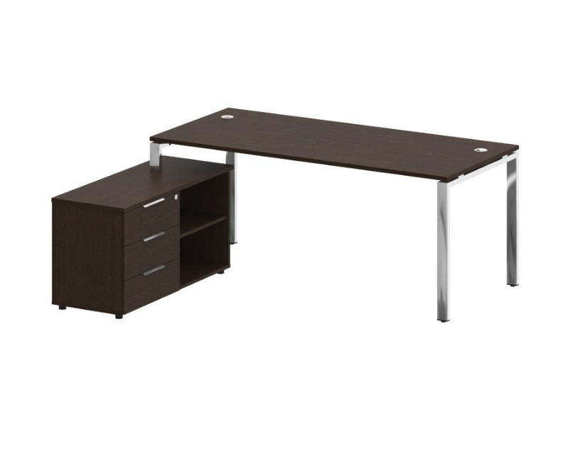 Угловой стол «Metal System Direct» — стильный центр вашего рабочего пространства! Изготовлен из прочного металла и ЛДСП толщиной 22мм, что обеспечивает надежность конструкции и комфорт при ежедневной работе. Один металлический ящик позволяет удобно хранить документы и канцелярию, освобождая поверхность от лишнего. Воплощение минимализма, хай-тека либо лофта идеально впишется как в современный бизнес-центр так и домашний кабинет руководителя.