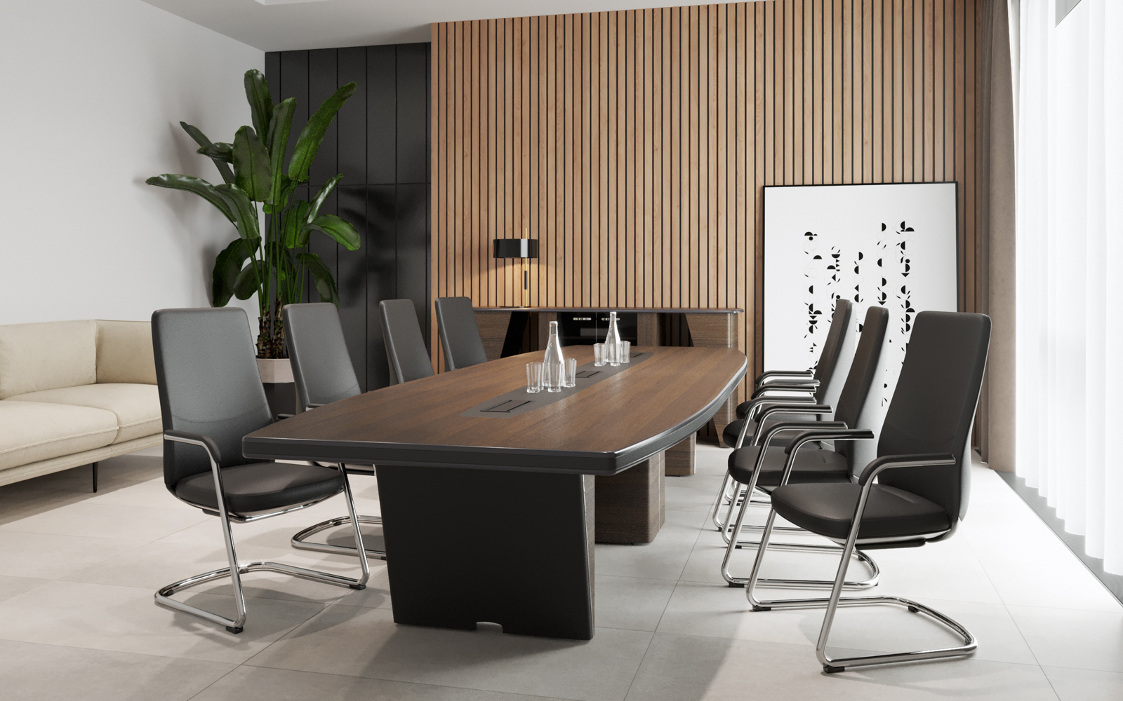 Переговоры – это искусство, а комфортная обстановка помогает достичь успеха! Стильный стол «Ньютон» станет центром ваших деловых встреч: – Прочная конструкция из качественных материалов (МДФ, шпонирование, ЛДСП), толщина столешницы — 64мм; – Изготовлен в России, соответствует строгим стандартам качества и включен в реестр Минпромторга РФ; – Идеально впишется в любой интерьер офиса, подчеркивая статус компании. Ваш успех начинается здесь!