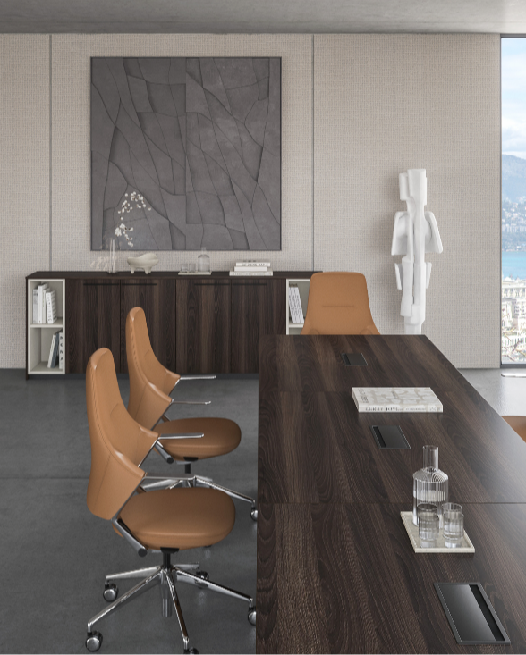Каждая деталь продумана для максимального комфорта: от удобства рабочей поверхности до тихих, бесшумных механизмов хранения. REEF — не просто мебель, а инструмент для концентрации, позволяющий руководителю полностью погрузиться в стратегические задачи, не отвлекаясь на внешние факторы.