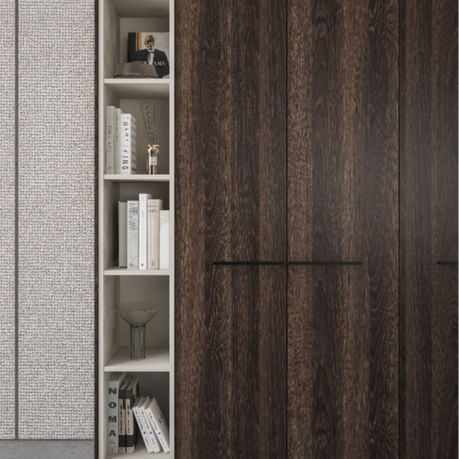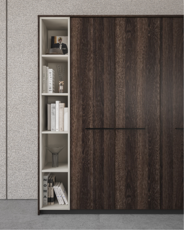 Чёткие геометрические линии, идеальные пропорции и гармоничное сочетание материалов — дерево, металл, стекло — создают образ уверенности, основательности и современной роскоши.