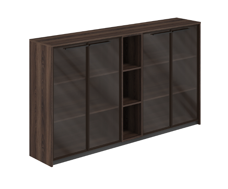 Современный шкаф серии REEF от бренда РИФФ — идеальное решение для вашего делового пространства! Благодаря стеклянным дверцам создается ощущение воздушности и света, а прочный каркас из ЛДСП толщиной 18 мм гарантирует надежность конструкции. ПВХ кромка шириной 2 мм защищает края от повреждений, добавляя эстетичности и долговечности. Интегрированный стеллаж позволяет эффективно использовать внутреннее пространство под хранение документов и важных вещей. Идеально впишется в любой бизнес-кабинет, придавая ему стильный и солидный вид.