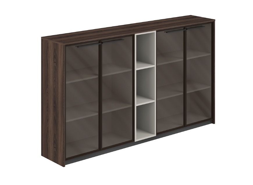 Современный шкаф серии REEF от бренда РИФФ — идеальное решение для вашего делового пространства! Благодаря стеклянным дверцам создается ощущение воздушности и света, а прочный каркас из ЛДСП толщиной 18 мм гарантирует надежность конструкции. ПВХ кромка шириной 2 мм защищает края от повреждений, добавляя эстетичности и долговечности. Интегрированный стеллаж позволяет эффективно использовать внутреннее пространство под хранение документов и важных вещей. Идеально впишется в любой бизнес-кабинет, придавая ему стильный и солидный вид.