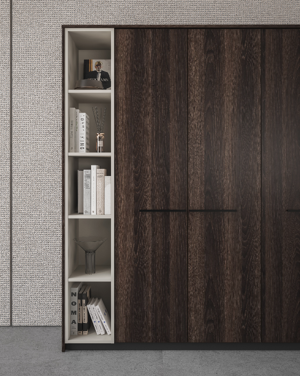 Современный шкаф серии REEF от бренда RIFF идеально впишется в интерьер бизнес-кабинета. Благодаря стеклянным дверцам и встроенному стеллажу обеспечивается удобный доступ к вещам и документам, а также визуальная лёгкость конструкции. ПВХ кромка толщиной 2 мм защищает мебель от повреждений, сохраняя её презентабельный внешний вид долгие годы. Каркас и фасады из ЛДСП 18 мм обеспечивают прочность и долговечность шкафа.