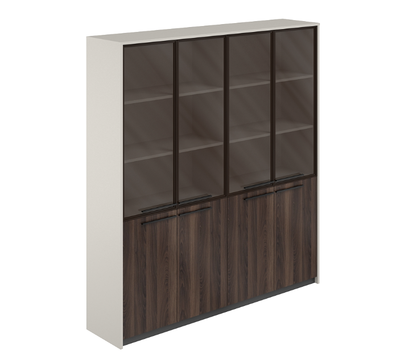 Современный шкаф «REEF» — идеальный выбор для вашего делового интерьера! Комбинированное исполнение сочетает удобство закрытых полок и стиль открытых стеклянных секций, подчеркивая ваш безупречный вкус. Толстый каркас (18мм) и надежная кромка из ПВХ гарантируют долговечность изделия, а стекло толщиной 4 мм добавляет элегантности и визуально расширяет пространство. Создайте имидж успешного профессионала вместе с мебелью класса «Бизнес».