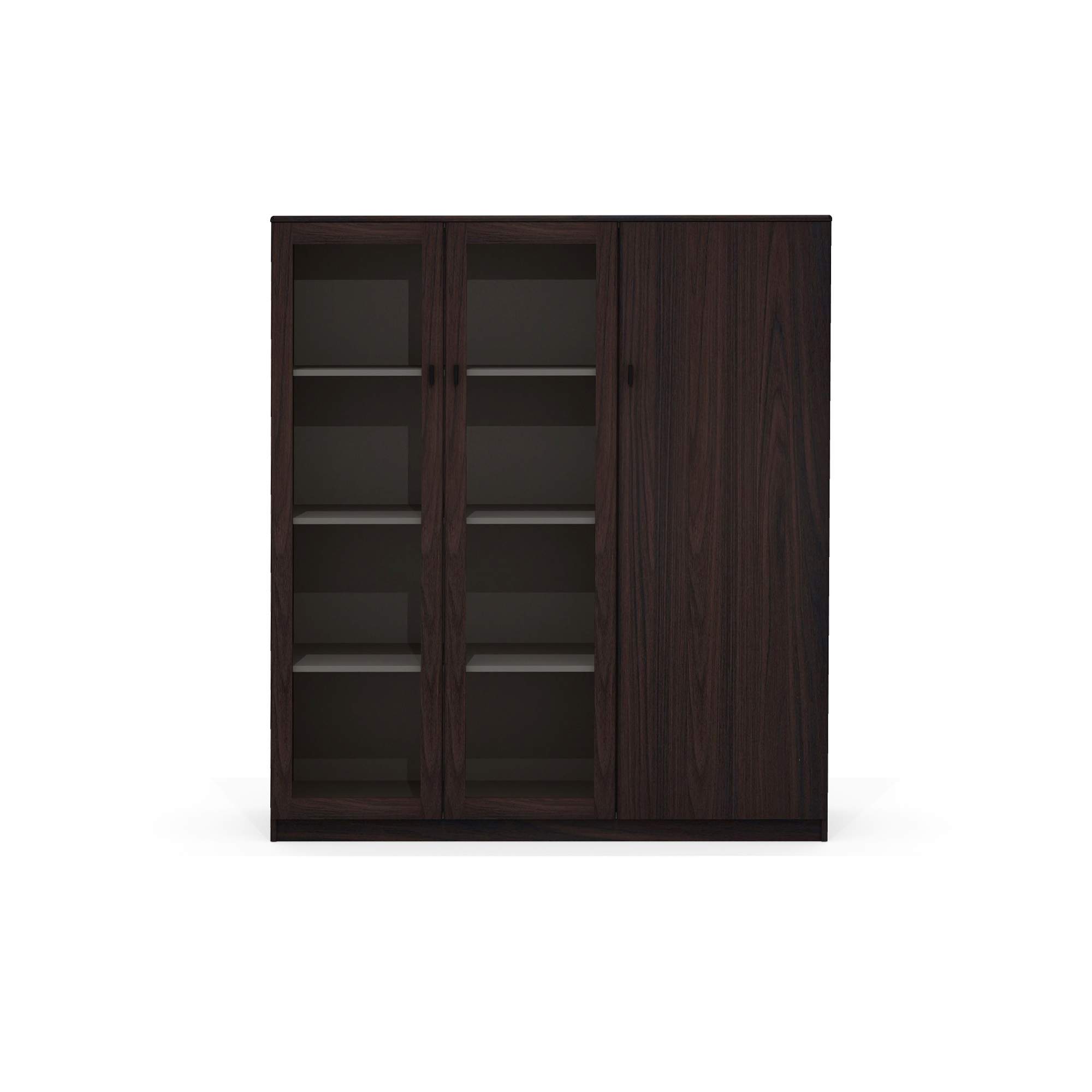 ▶ Документы — 3 регулируемые полки, закрытые стеклянными фасадами из тонированного в массе стекла 4 мм — защищают от пыли, сохраняют видимость содержимого.