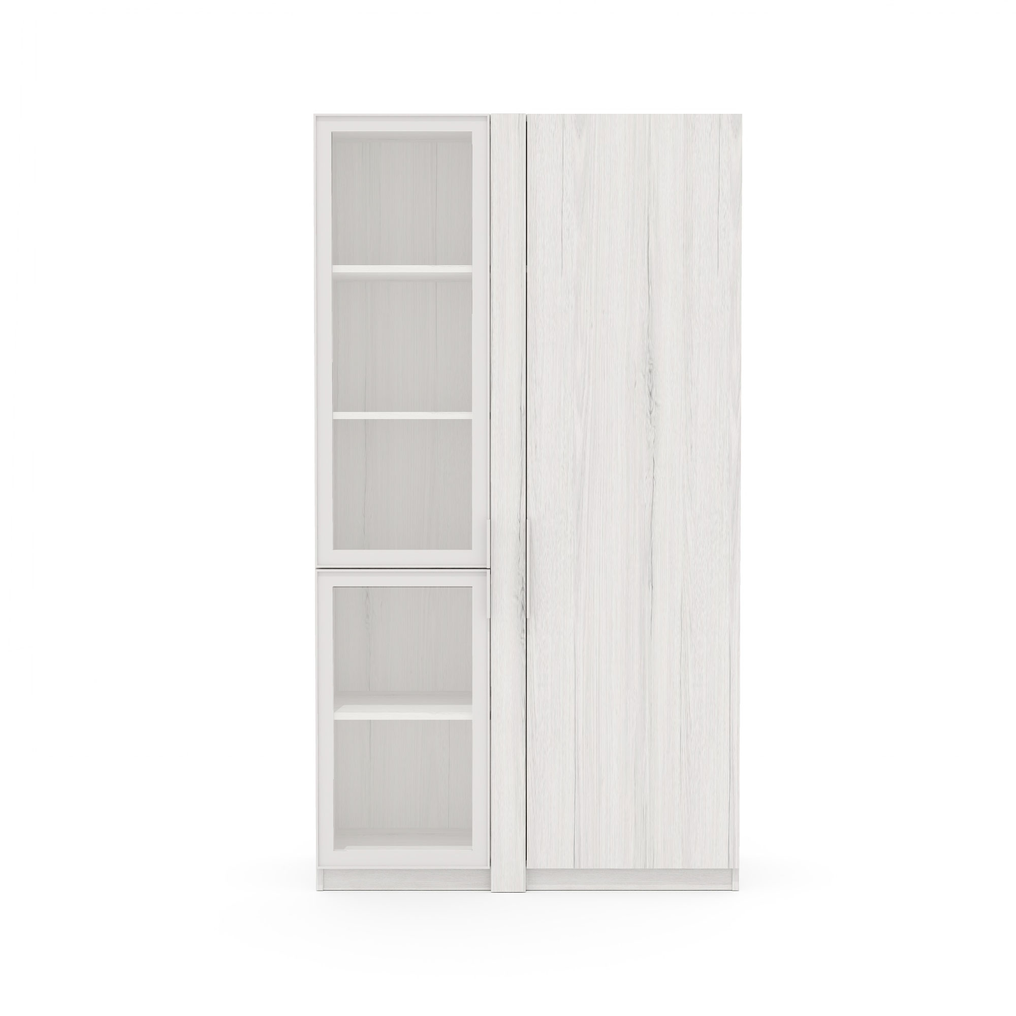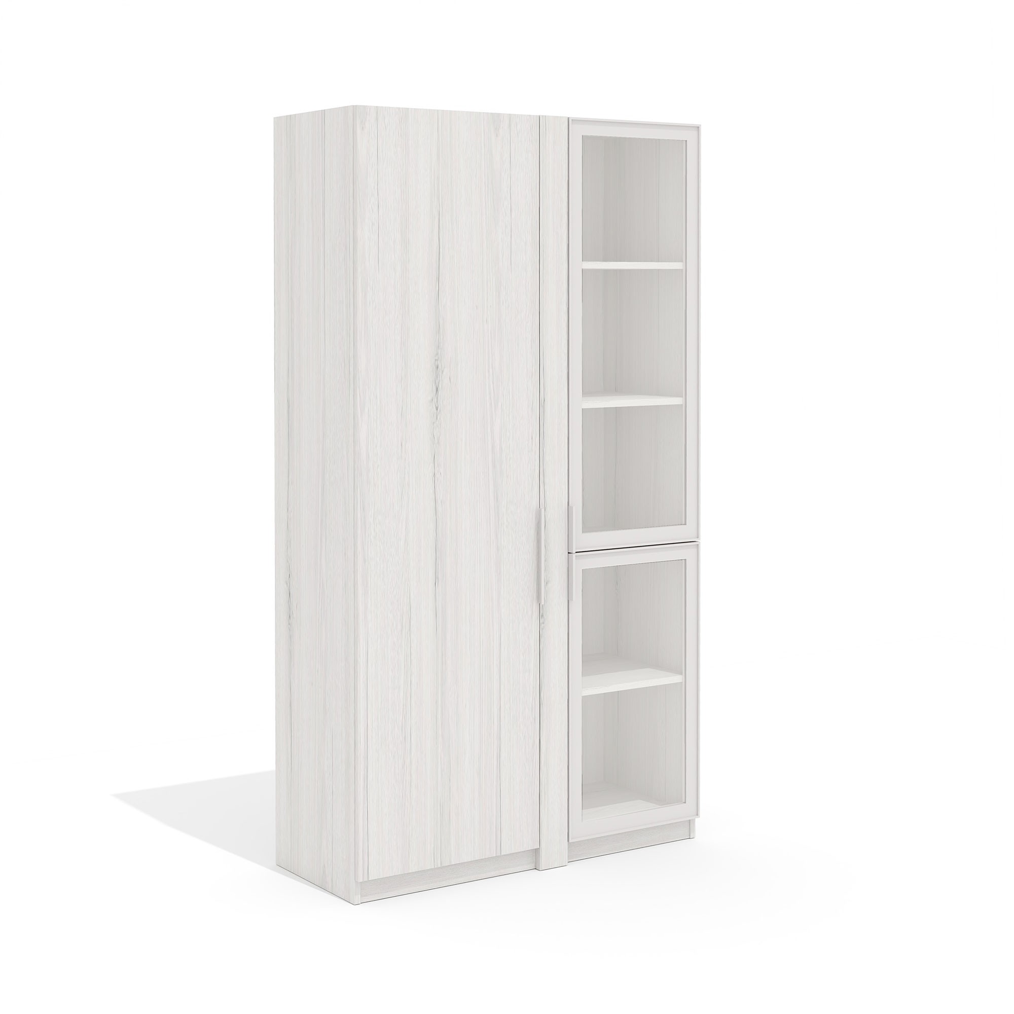Современный гардероб-стеллаж «ТАЙМС» — стильное решение для вашего дома! Изделия произведены в России согласно высоким стандартам качества, внесены в реестр Минпромторга. Стеклянные фасады добавляют воздушности пространству, а каркас толщиной 18 мм гарантирует прочность и долговечность. ПВХ-кромка 2 мм защищает от сколов и придает элегантность. Удобная столешница толщиной 40 мм станет отличным местом для аксессуаров или декора.