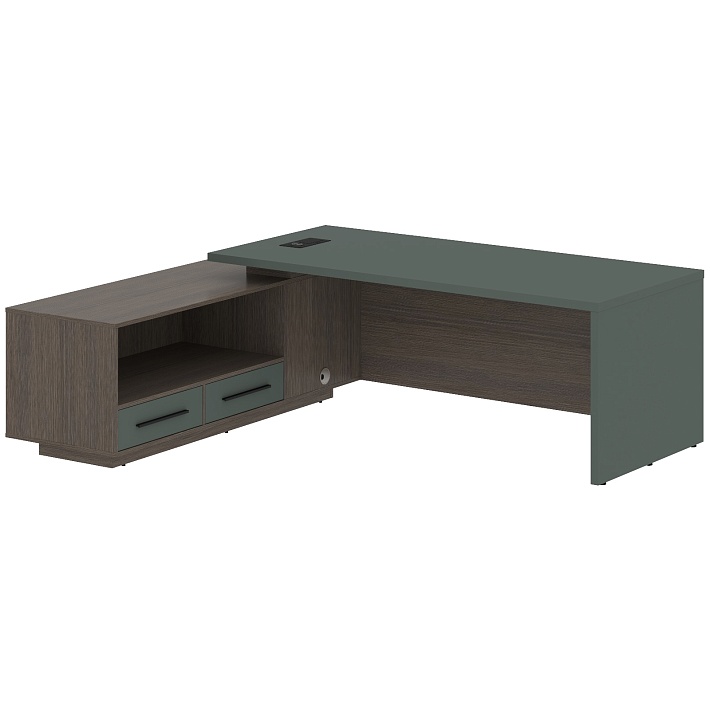 Угловой стол руководителя «VELION» – идеальное сочетание стиля, комфорта и функциональности! Продукция премиум-класса от белорусского производителя выполнит любые ваши ожидания из прочного ДСП со слоем шпона толщиной 36мм. Один взгляд – и вы погружаетесь в атмосферу элегантной классики либо современного дизайна по вашему выбору. Удобная угловая форма дополняется дополнительной тумбой, обеспечивая порядок и удобство хранения документов и рабочих материалов.