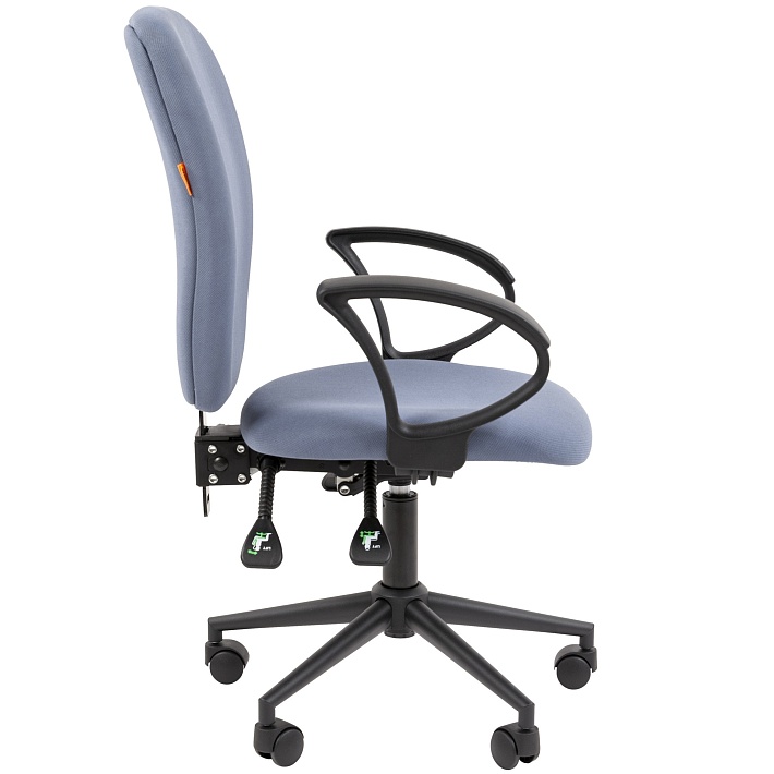 Обивка офисного кресла выполнена из износостойкой ткани, а прочный каркас и газпатрон 3 класса выдерживают до 120 кг постоянной нагрузки.