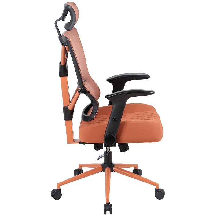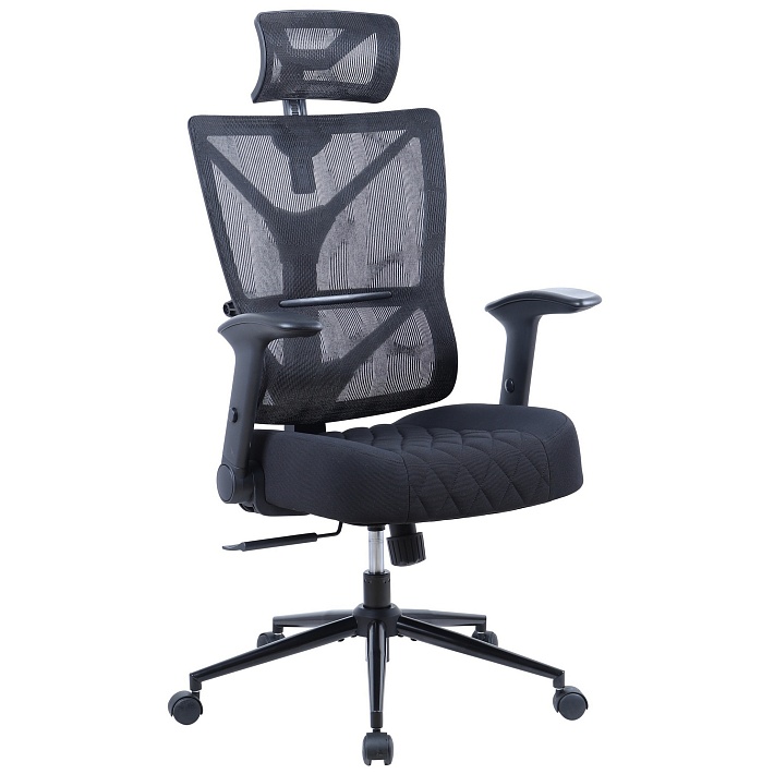 Кресло руководителя сконструировано с учётом высоких требований к эргономике. Высокая спинка, удобный подголовник и поясничный изгиб сохраняют правильное положение тела в течение всего дня, помогая избежать перенапряжения в спине. Механизм качания с синхронным отклонением спинки и сиденья в пропорции 3:1 и фиксацией в 3-х положениях позволяет принять наиболее удобное положение тела, откинуться и расслабиться в перерывах. Регулировка высоты сиденья адаптирует компьютерное кресло для людей разного роста. Подголовник регулируется по высоте и углу наклона, обеспечивая поддержку шеи и головы. А подлокотники откидываются назад, благодаря чему после окончания рабочего дня кресло можно закатить под стол и сэкономить пространство.