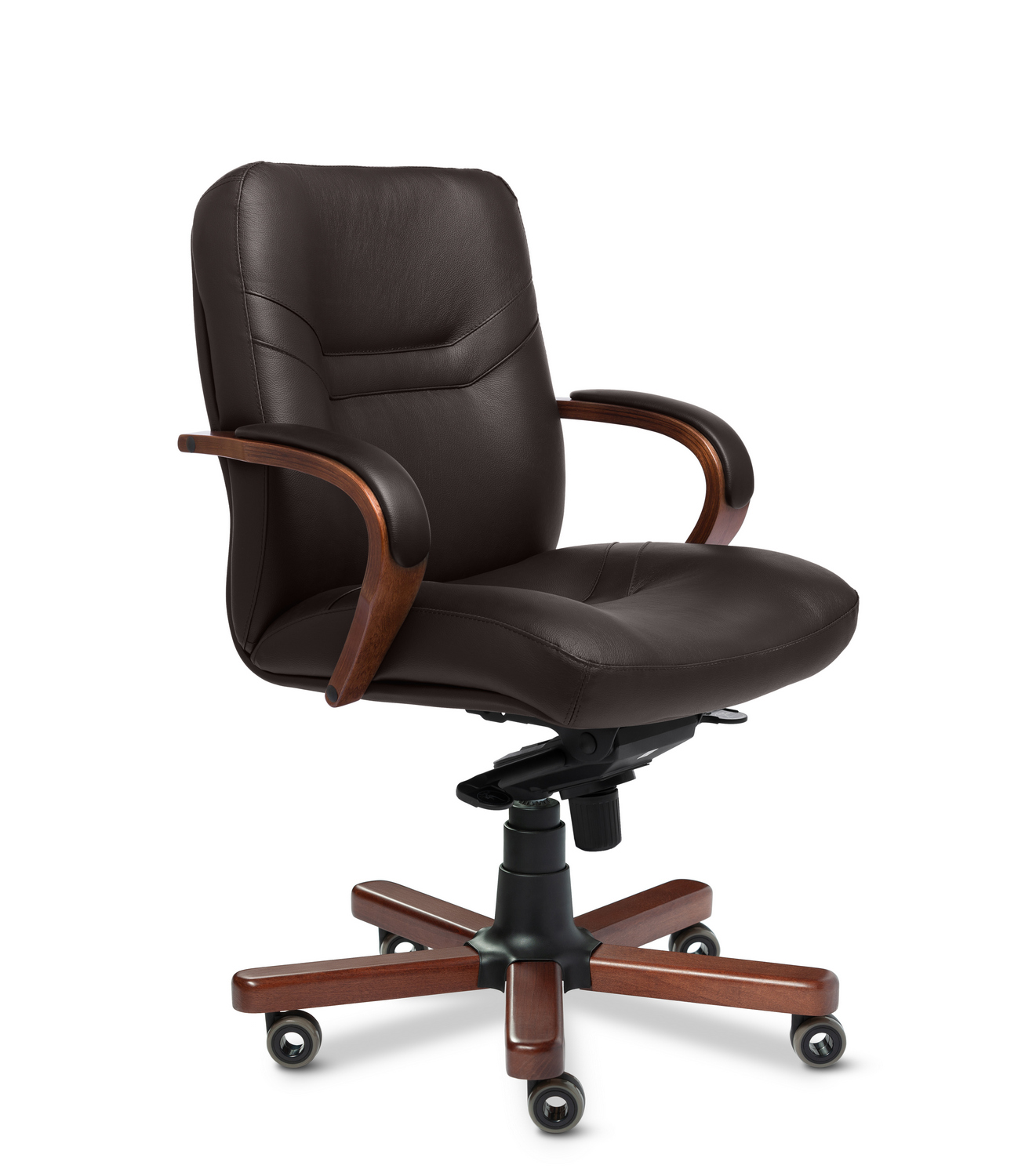 "Кресло офисное Министр B" – ваш надежный спутник в мире комфорта! Идеально подходит для интенсивной работы, максимальная нагрузка до 150 кг прочная металлическая основа с элегантными деревянными накладками обеспечивает устойчивость и стиль. Размеры (670х720х1040 мм) создают простор и свободу движений. Кожа обивки дарит премиальные ощущения при каждом прикосновении." Создайте атмосферу уюта и продуктивности прямо сейчас!"