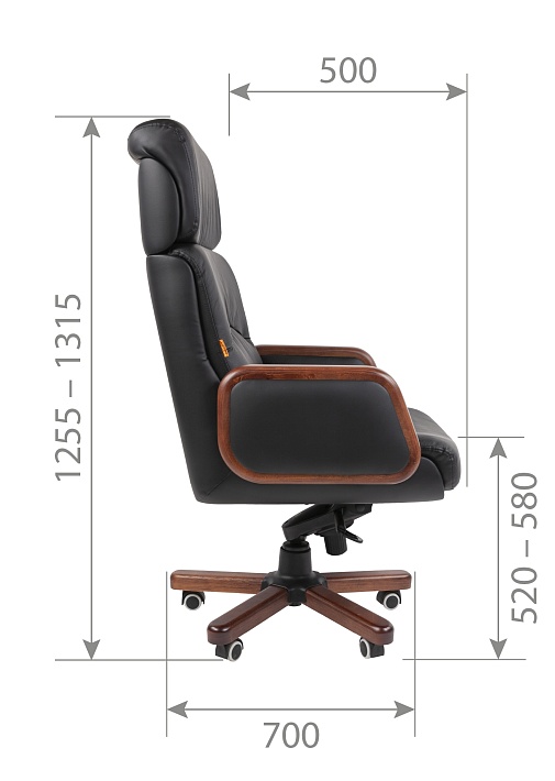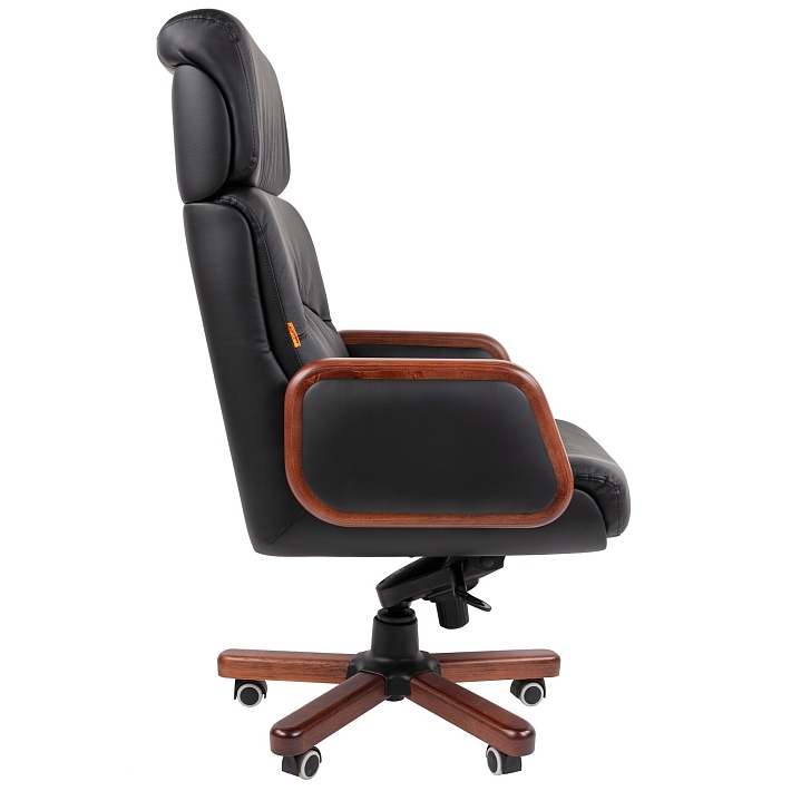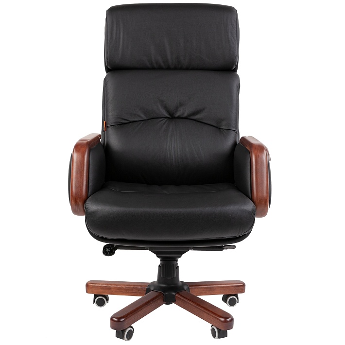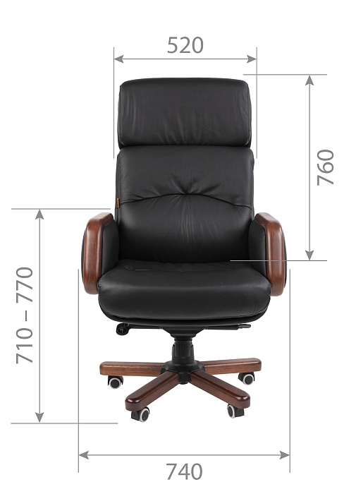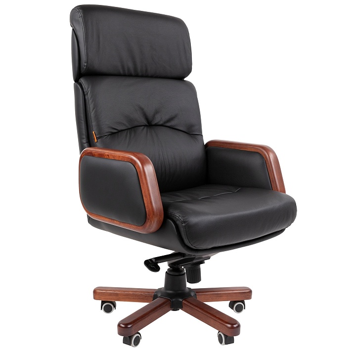 Обивка выполнена из натуральной кожи на лицевых поверхностях сиденья и спинки в сочетании с экокожей на боковых и задних поверхностях. Оба материала легко очищаются от бытовых загрязнений и не требуют специального ухода, а прочный каркас офисного кресла и газпатрон 4 класса выдерживают до 150 кг постоянной нагрузки.