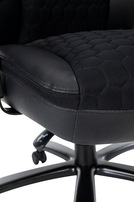 Поддержка шеи и головы, боковая поддержка спины по всей высоте и поясничная поддержка способствуют правильной осанке. Сиденье с блоком независимых пружин обеспечивает ортопедический эффект и максимальный комфорт на рабочем месте. Механизм качания с синхронным отклонением спинки и сиденья в пропорции 7:1 и с фиксацией в 4 положениях позволяет откинуться и расслабиться в перерывах, зафиксировав компьютерное кресло в наиболее удобной позиции. Сиденье и подлокотники регулируются по высоте, адаптируясь под конкретного пользователя.