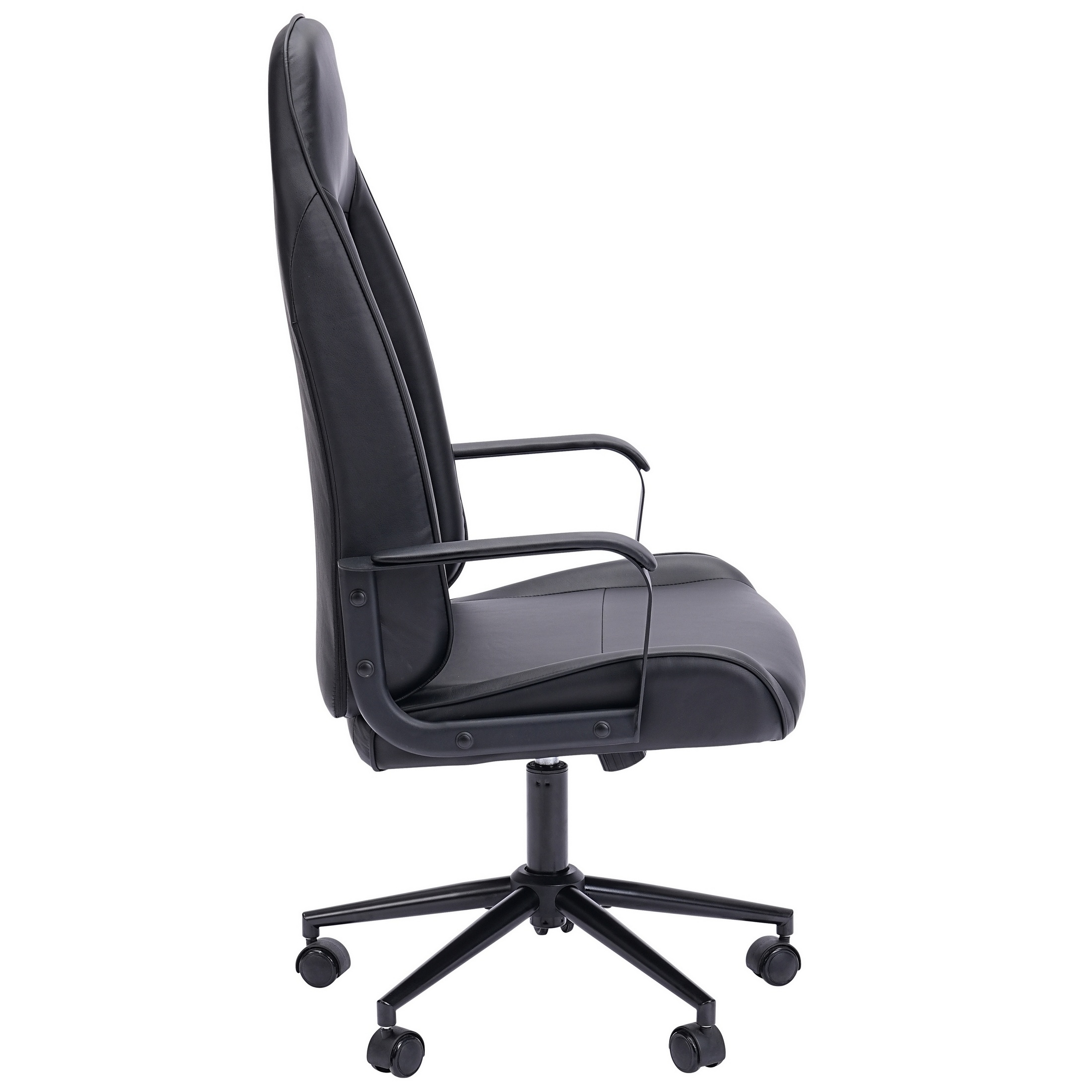 Обивка из качественной экокожи легко очищается от бытовых загрязнений и не требует специального ухода, а прочный каркас офисного кресла и газпатрон 3 класса выдерживают до 120 кг постоянной нагрузки.