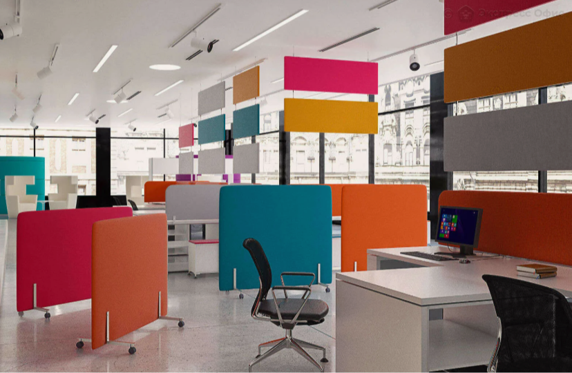 - Настольные барьеры — идеальны для индивидуальных рабочих мест, снижают уровень шума и создают ощущение личного пространства.