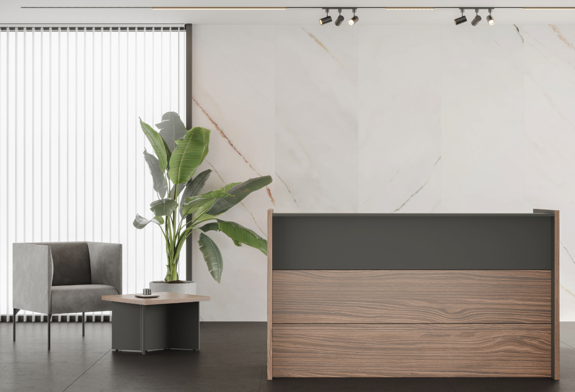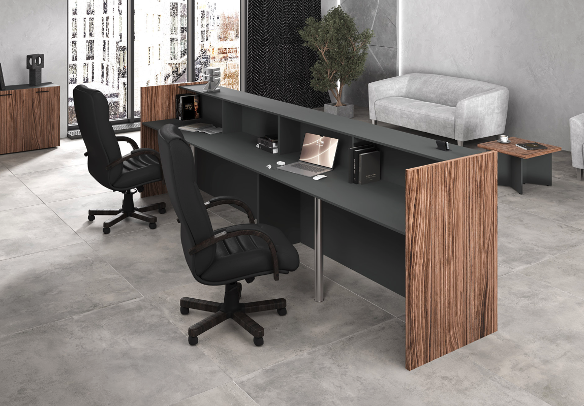 Современная стойка ресепшн вариант 1 от Dali – идеальное решение для вашего бизнеса! Продукция российского производства из качественных материалов: ЛДСП, МДФ, шпона. Стильная конструкция, толщина столешницы 25 мм обеспечит комфорт и надежность в использовании. Дизайн стойки подчеркнет статус компании и создаст приятное впечатление у посетителей. Удобно, презентабельно, надежно – ваш правильный выбор уже здесь!
