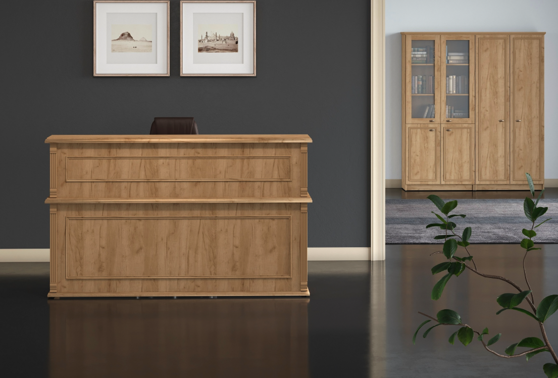 Классическая стойка ресепшн RMS 160 от Raut – это сочетание элегантности и функциональности, идеально подходящая для вашего бизнеса! Производство Беларуси гарантирует качество и надежность изделий из прочного материала толщиной 18 мм. Кромка ПВХ 0,4 мм обеспечивает долговечность и эстетичный внешний вид. Выбор нашей стойки – залог презентабельности вашего офиса и комфорта посетителей!