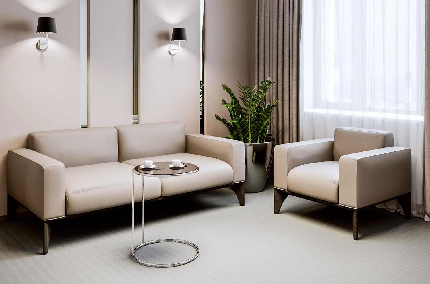 — Натуральная кожа: мягкая, дышащая, с тонкой матовой фактурой — обтягивает подлокотники, спинки и элементы сидений. Это не «кожзам», не имитация — это живая кожа, выдержанная в экологичных красителях, которая со временем обретает благородный патинаж.