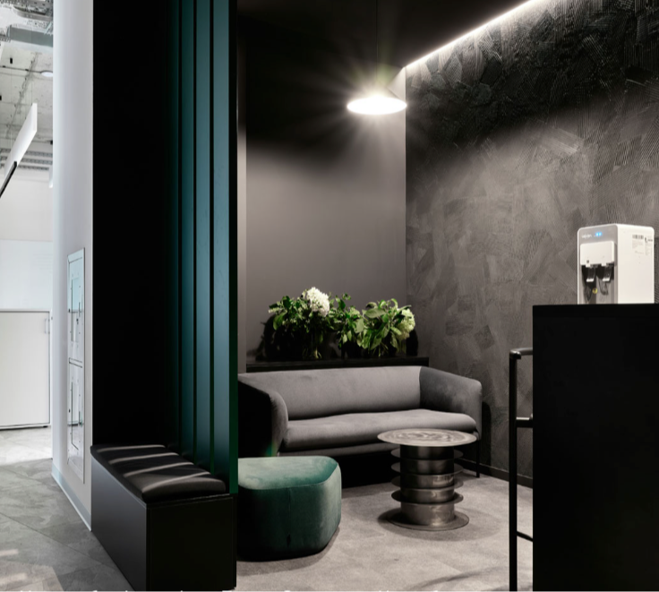 Спинка поднимается выше уровня глаз — создавая визуальный и психологический барьер. Это не изоляция. Это атмосфера уединения в открытом офисе. Сидящий в ЛИРО — не «находится на диване», он погружается в зону тишины, где можно собраться с мыслями, прочитать письмо, сделать паузу — без чувства, что тебя наблюдают.