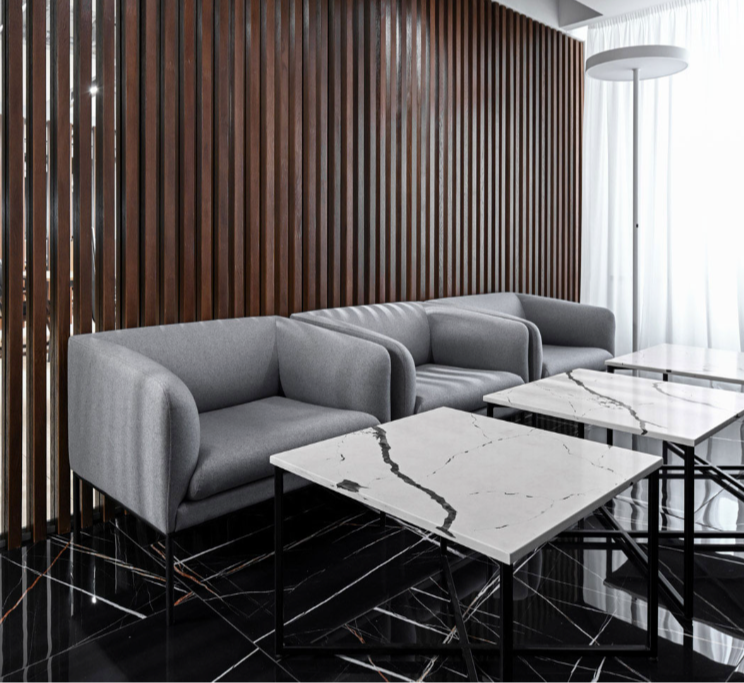 Прямые линии не исчезают — они обтекаются. Спинки и подлокотники получают лёгкие изгибы, как ветер в стекле. Углы не срезаны — они плавно переходят в закругления, создавая ощущение, будто мебель выросла из пола, а не была поставлена. Это дизайн, который дышит.