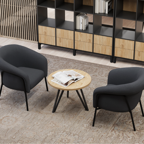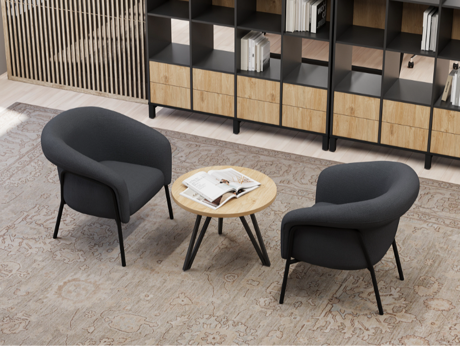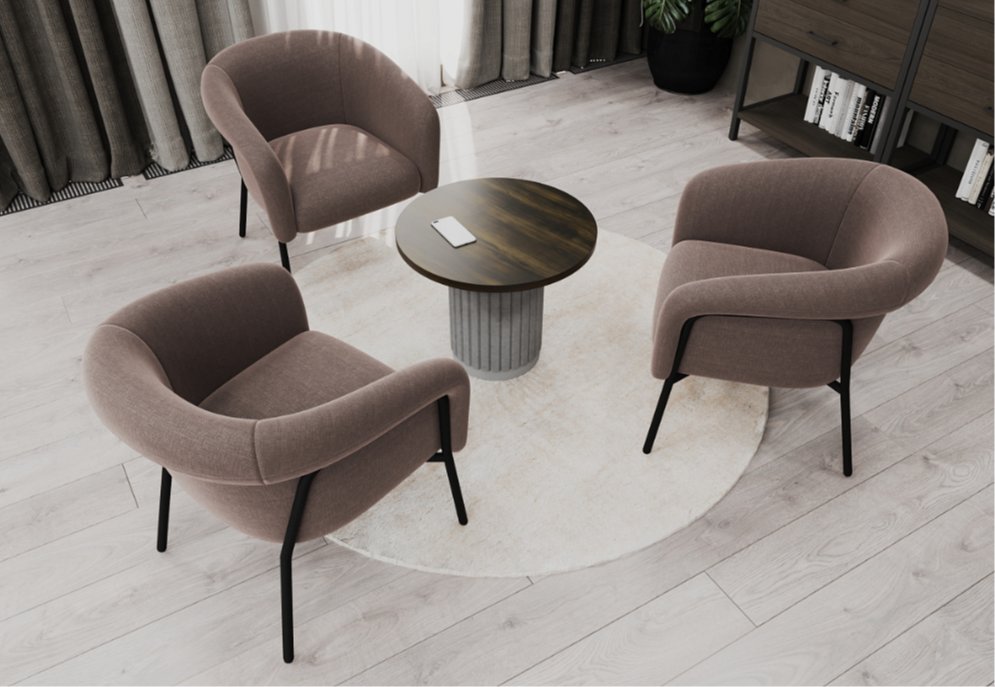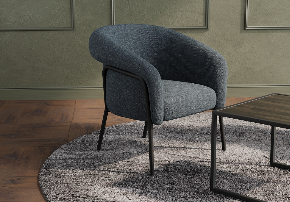 Элегантный внешний вид кресла рождается из гармонии необычной, плавной формы, текстурированной ткани и чёрного металлического каркаса — лаконично, но с характером. Широкая палитра цветов позволяет подчеркнуть индивидуальность вашего интерьера, будь то современный корпоративный холл, лаундж-зона или зона ожидания для клиентов.