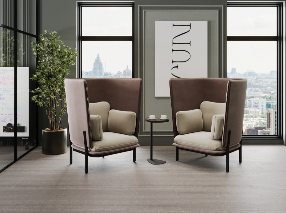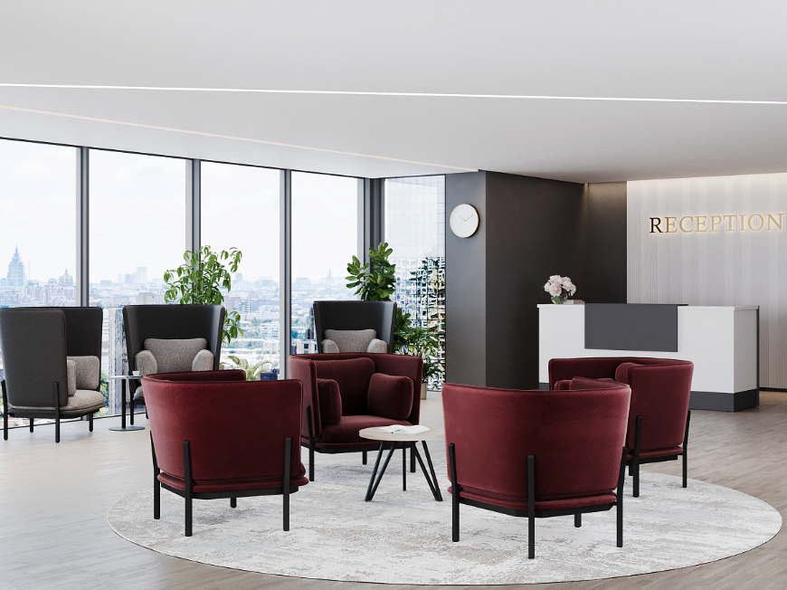 — с низкой спинкой — для открытых пространств, неформальных встреч и лёгкой визуальной воздушности