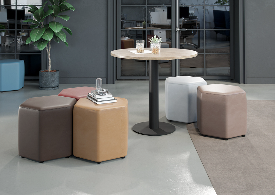 Эти пуфы легко адаптируются под любые задачи: будь то неформальная летучка, переговоры в кругу или зона отдыха — вы сами решаете, как их использовать. Количество комбинаций ограничено только вашей фантазией: расставляйте их по-разному, сочетайте цвета, создавайте динамичные зоны — и ваш интерьер всегда будет в движении.