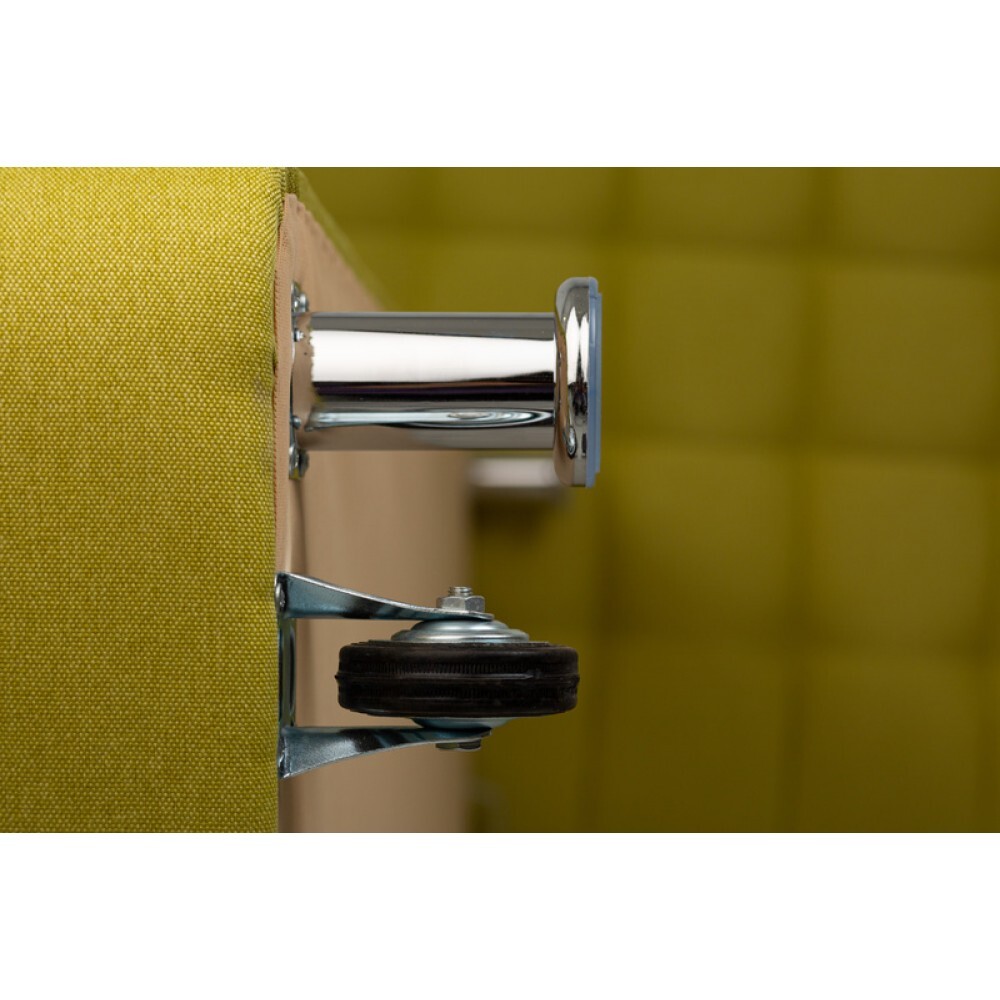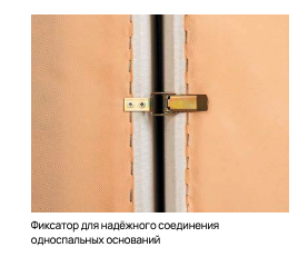 Хромированные ножки (базовая комплектация), колесные опоры для легкого передвижения (большие ролики) – 2 шт. Фиксаторы для соединения двух односпальных кроватей (расположены с одной стороны). Имеется ручка для удобства подъема основания при перемещении.