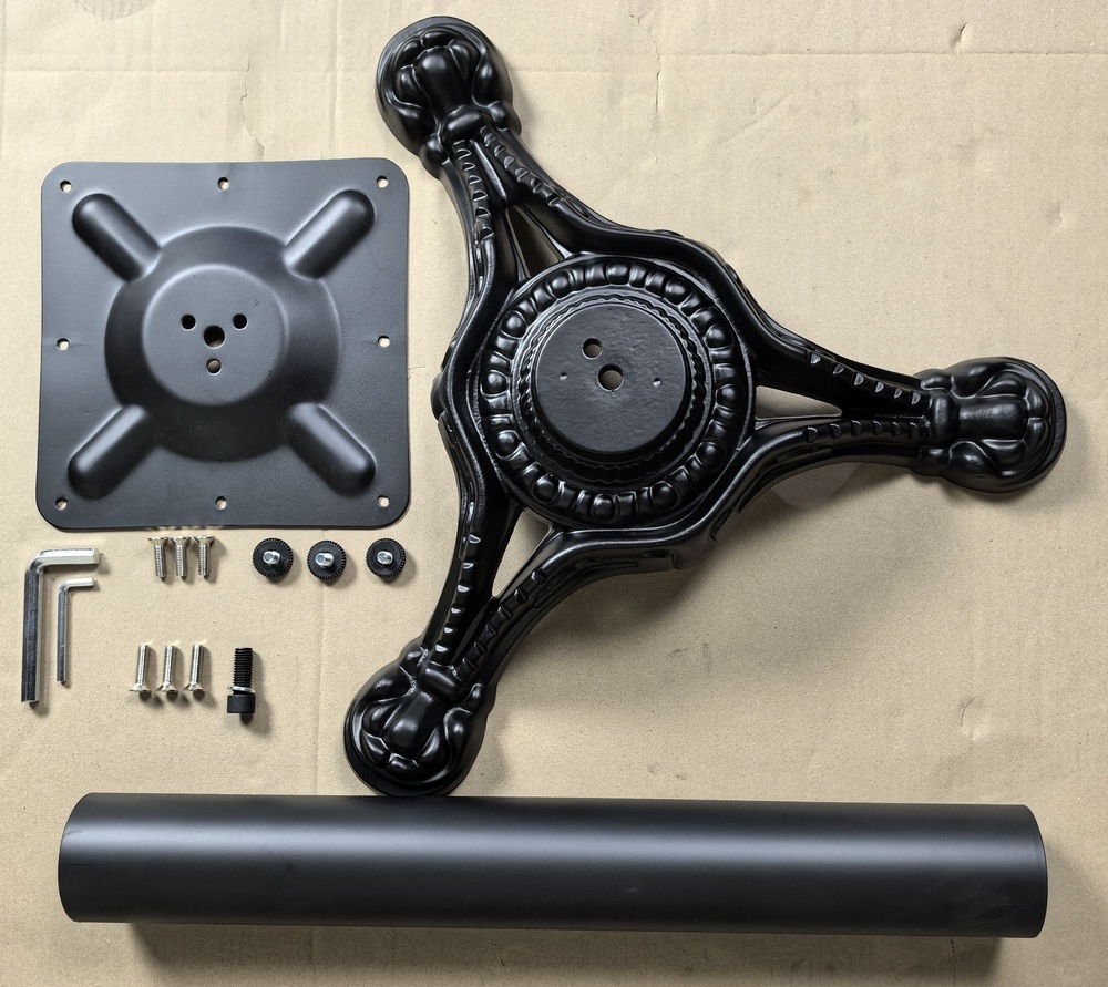 Подстолье чугунное. Труба — стальная. Основание — чугунное литье. Диаметр основания: 58 см, диаметр трубы: 7,6 см, размер верхней площадки: 25х25 см. Обладает высокой прочностью и долговечностью, благодаря использованию чугуна и стали в конструкции. Подходит для использования в кафе, ресторанах, столовых и других общественных заведениях. Стильный дизайн и простота сборки делают его идеальным выбором для вашего интерьера. Поддерживает устойчивость и надежность эксплуатации даже при интенсивных нагрузках. размер столешницы — D-70. 70*70.