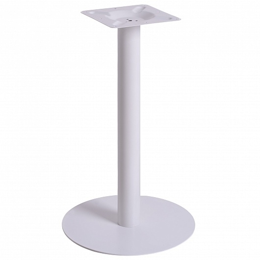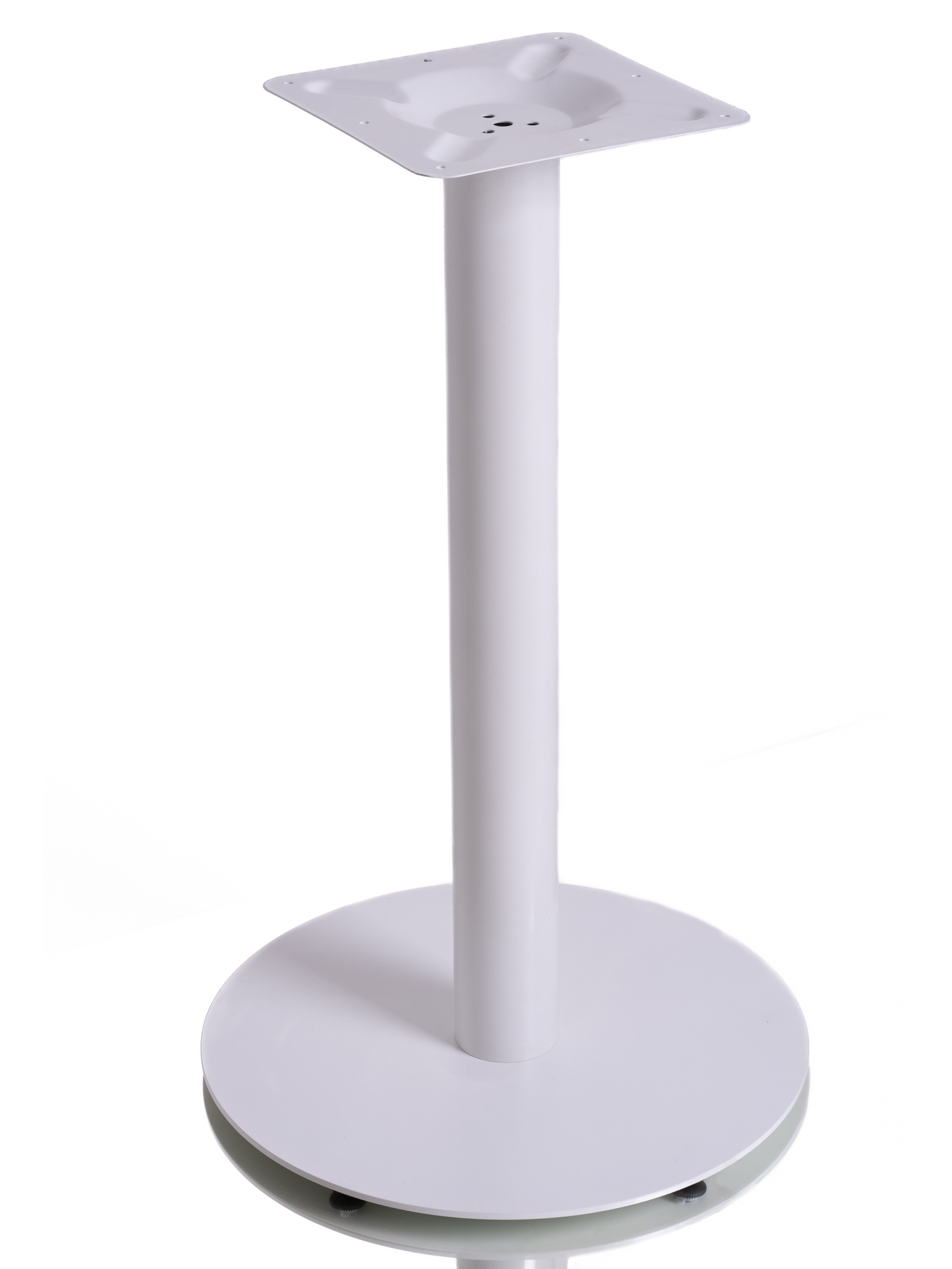 Подстолье металлическое. Труба и основание-белое порошковое покрытие. Основание плоское. Рекомендуемый размер столешницы: D-70, 70х70.Обладает повышенной устойчивостью и выдерживает нагрузку до 100 кг. Подходит для использования с стеклянными, деревянными и ламинированными столешницами. Удобное крепление позволяет быстро собрать конструкцию без дополнительного инструмента. Обеспечивает надежную поддержку стола в условиях интенсивной эксплуатации. Идеально подходит для офисов, кафе и домашних интерьеров.
