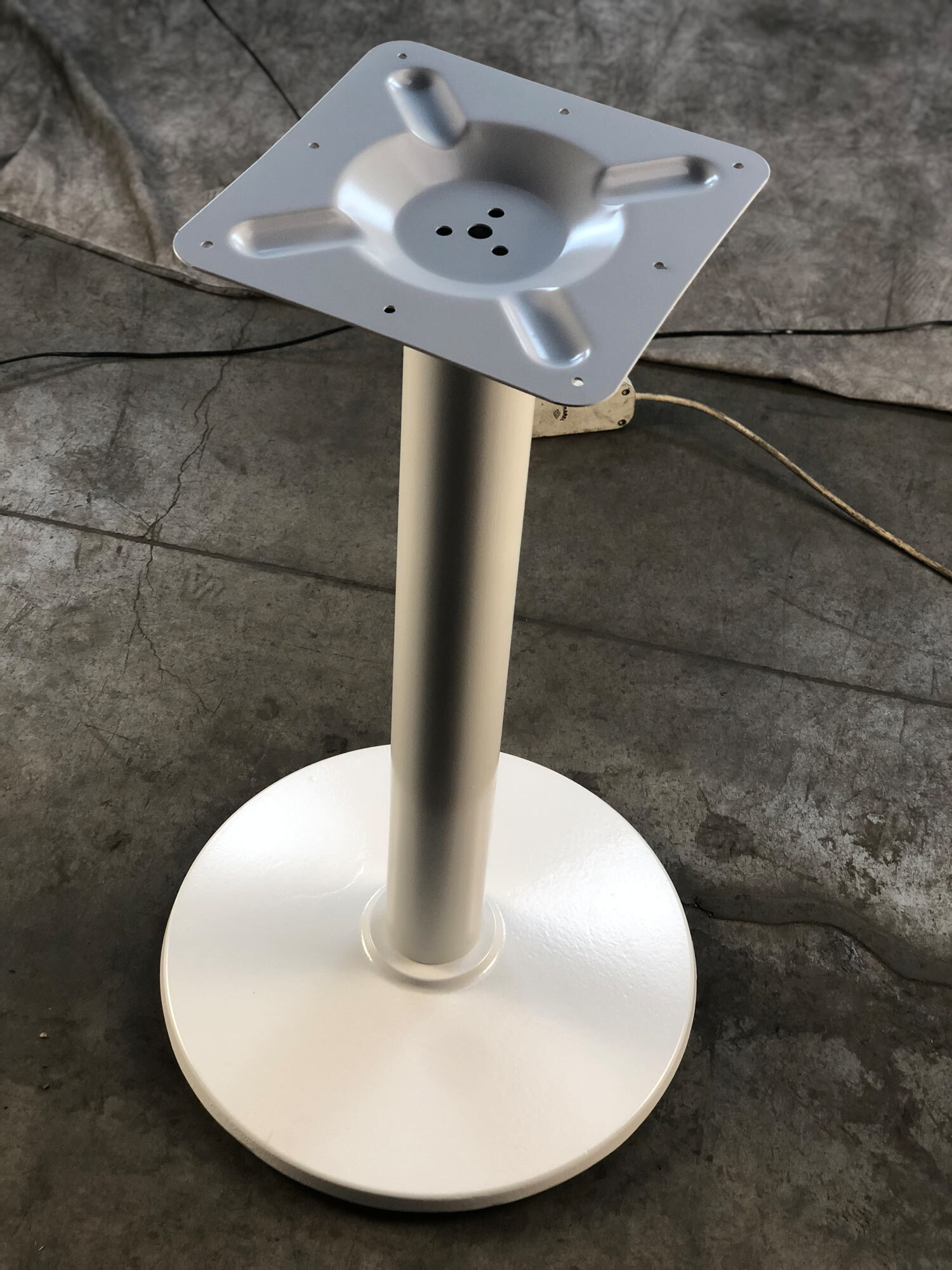 Подстолье металлическое. Труба и основание-белое порошковое покрытие. Основание конусообразное. Рекомендуемый размер столешницы: D-70, 70х70.Отличается повышенной устойчивостью и надежностью, способно выдерживать нагрузку до 120 кг. Прочный материал конструкции обеспечивает долгий срок службы без потери внешнего вида и эксплуатационных качеств. Подходит для использования с различными материалами столешниц – дерево, стекло, камень. Компактные габариты позволяют экономить пространство, идеально подходит как для дома, так и офиса.