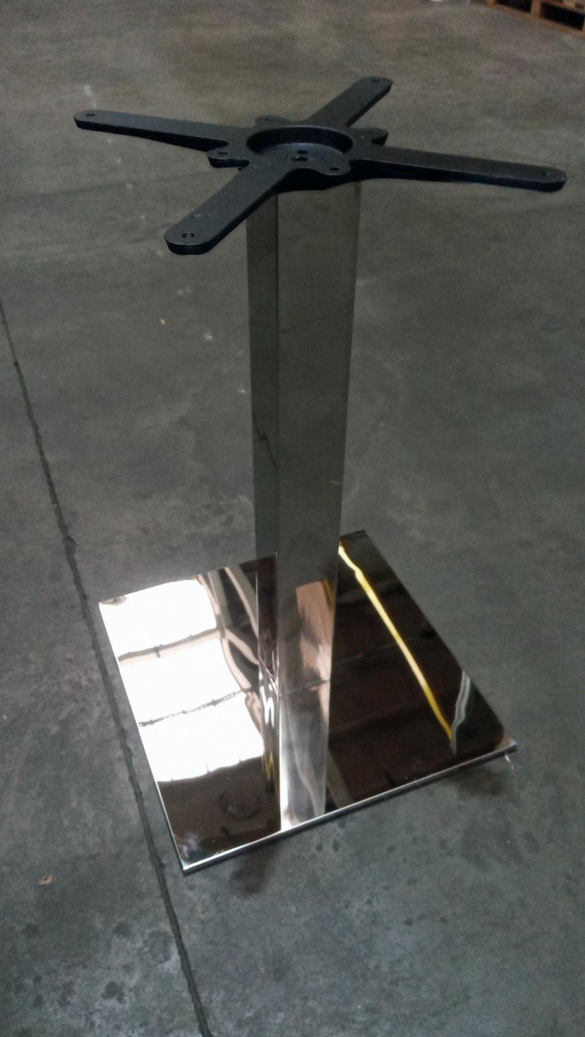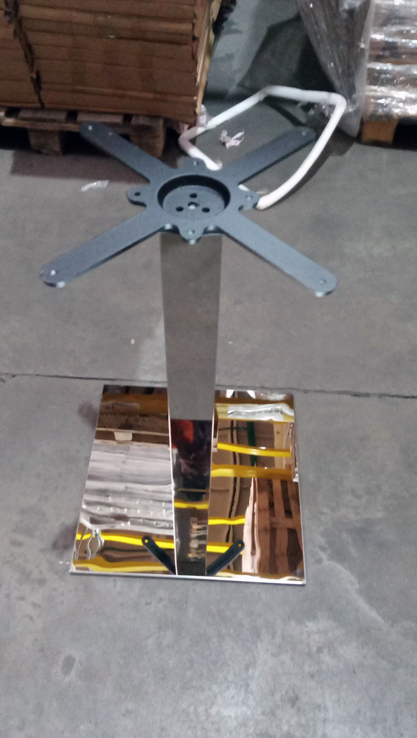 Подстолье хромированное. Размер основания: 45х45 см, размер трубы: 8х8 см. Рекомендуемый размер столешницы: D-90, 90х90 Хромированное подстолье отличается прочностью и эстетичностью конструкции. Изготовлено из высококачественных материалов, обеспечивающих надежность и долговечность эксплуатации. Удобное основание размером 45x45 см обеспечивает устойчивость стола и выдерживает значительные нагрузки. Подходит для использования со стеклянными, деревянными и ламинированными столешницами указанного диаметра и формата.