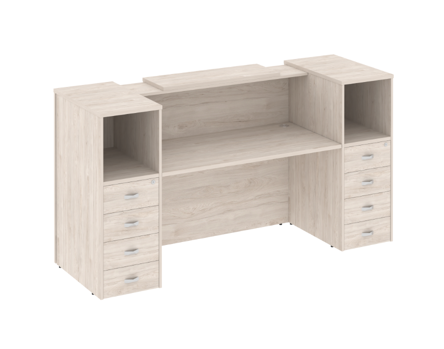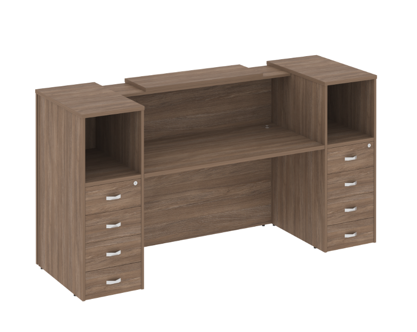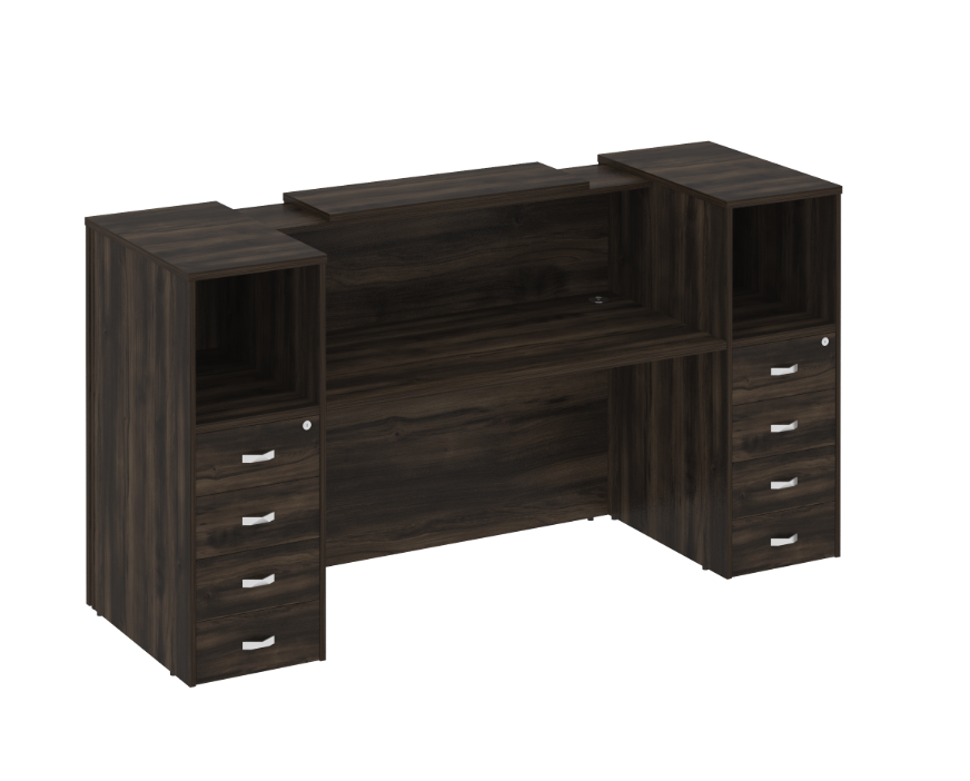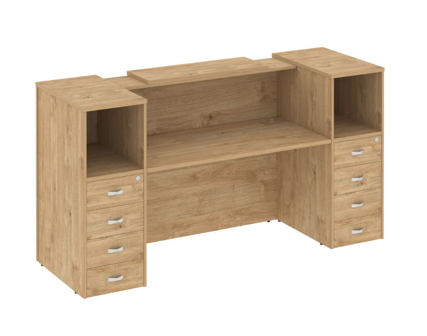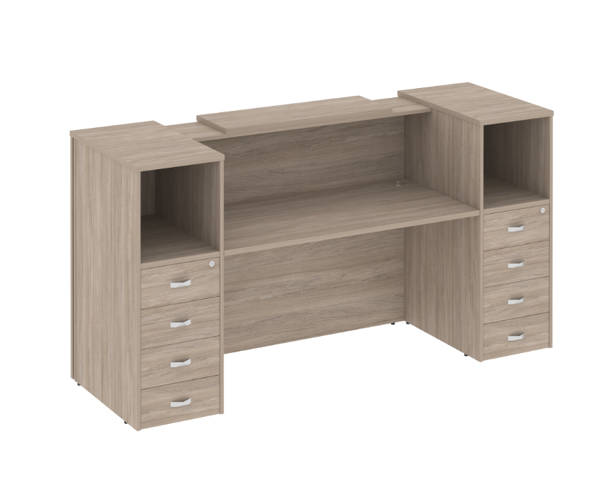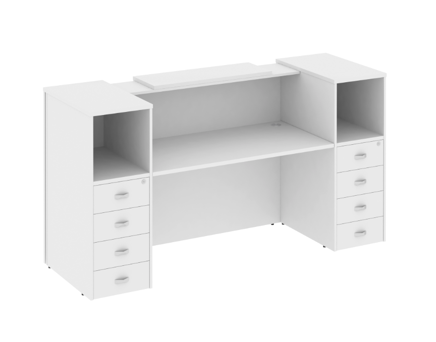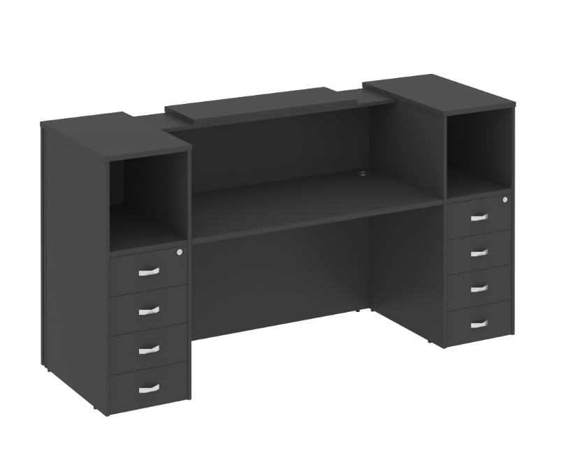 Ресепшн «Оникс» — это стильное решение для вашего офиса! Продукт российского производства выполнен из качественного ЛДСП, толщина столешницы составляет надежные 36 мм, каркас и фасады имеют толщину 18 мм. Современный дизайн подчеркнет престиж компании и создаст приятное впечатление у посетителей. Прочность конструкции обеспечивает долговечность использования. Идеально подходит как для небольших компаний, так и крупных организаций. Приобретая данный ресепшн, вы выбираете качество и надежность!
