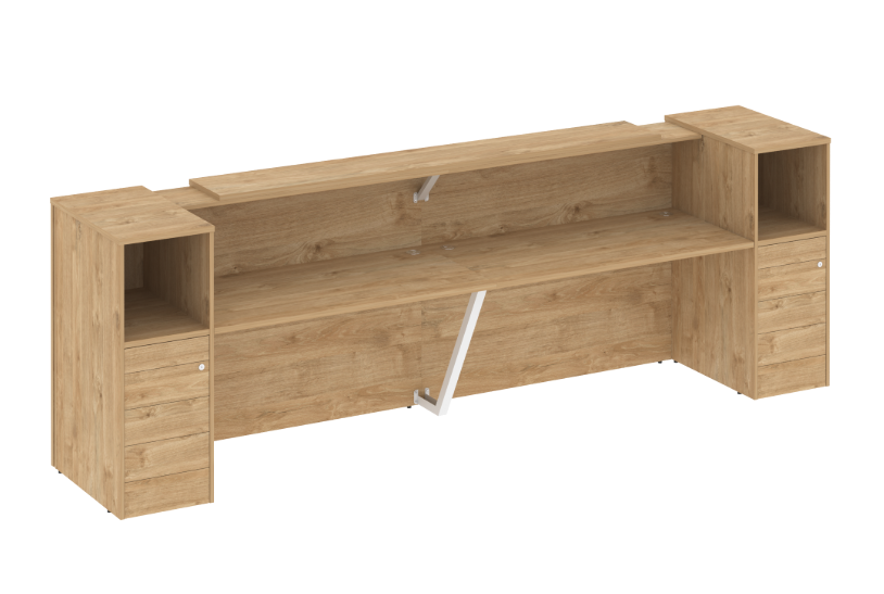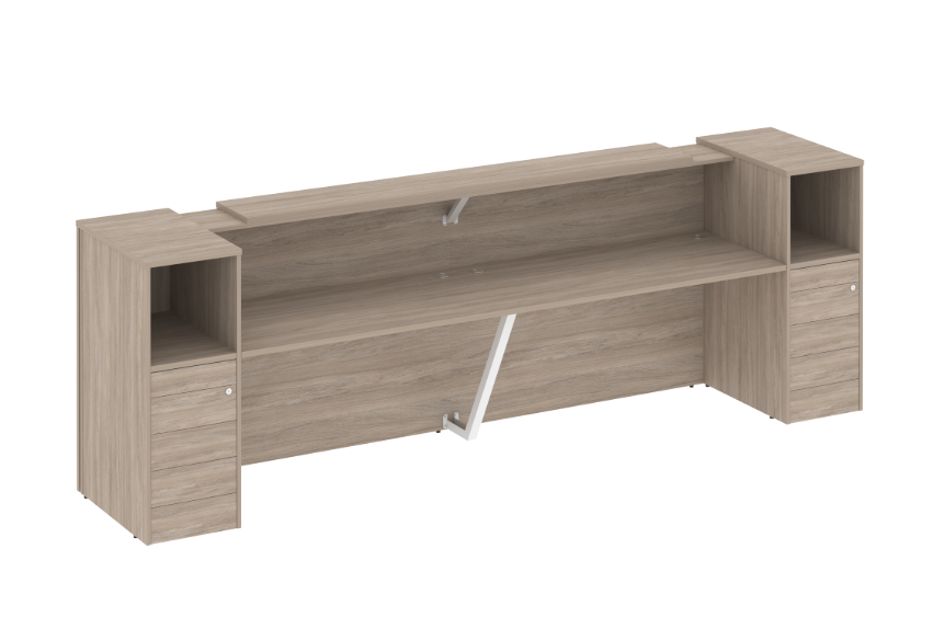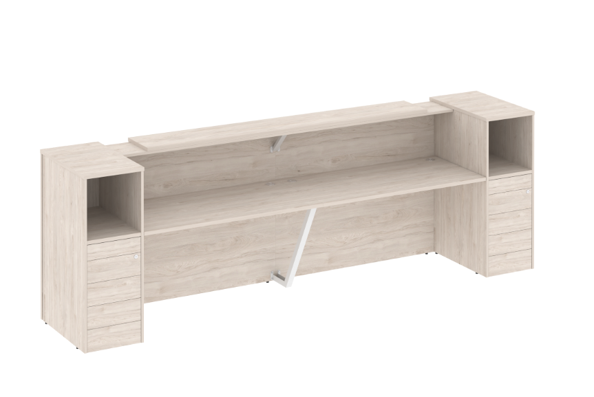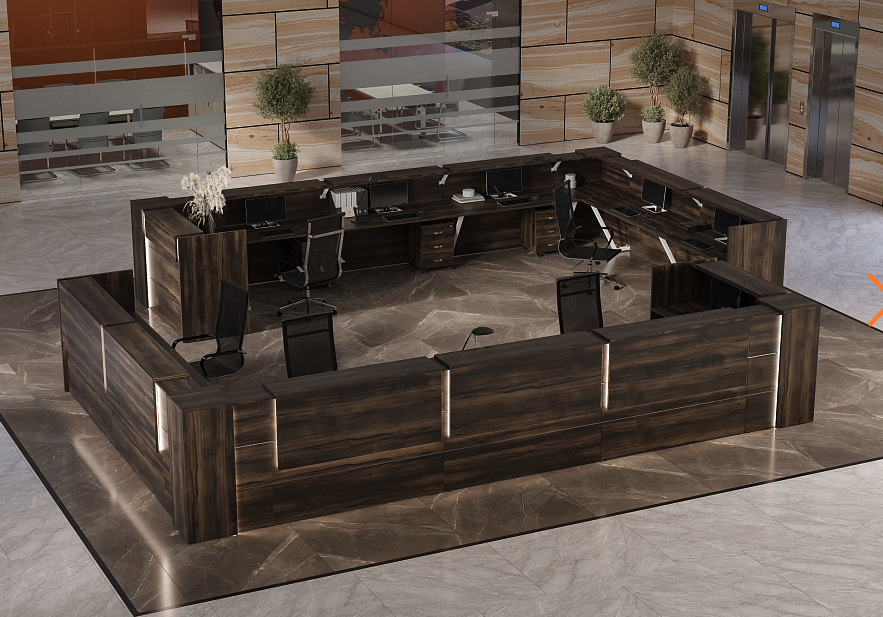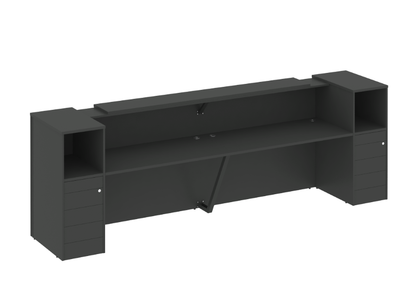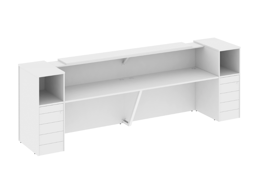 Ресепшн «Оникс» — это стильное решение для вашего офиса! Продукт российского производства выполнен из качественного ЛДСП, толщина столешницы составляет надежные 36 мм, каркас и фасады имеют толщину 18 мм. Современный дизайн подчеркнет престиж компании и создаст приятное впечатление у посетителей. Прочность конструкции обеспечивает долговечность использования. Идеально подходит как для небольших компаний, так и крупных организаций. Приобретая данный ресепшн, вы выбираете качество и надежность!