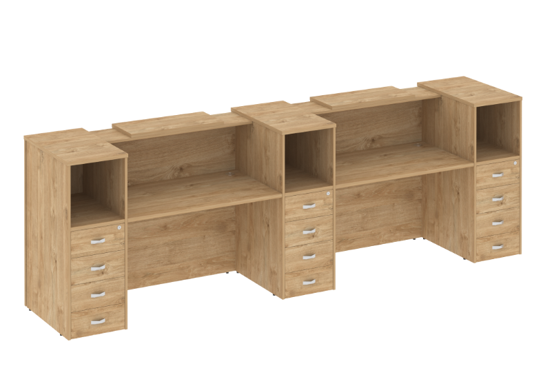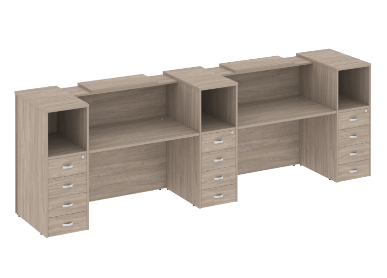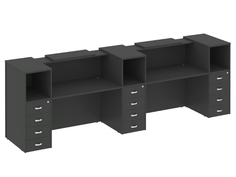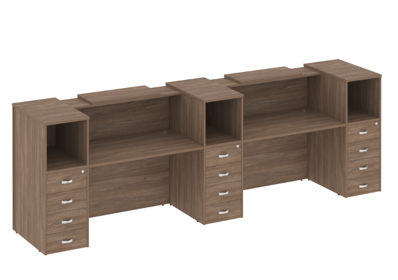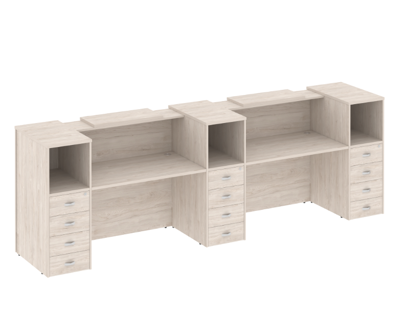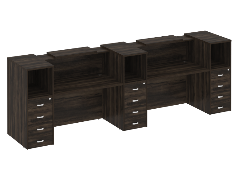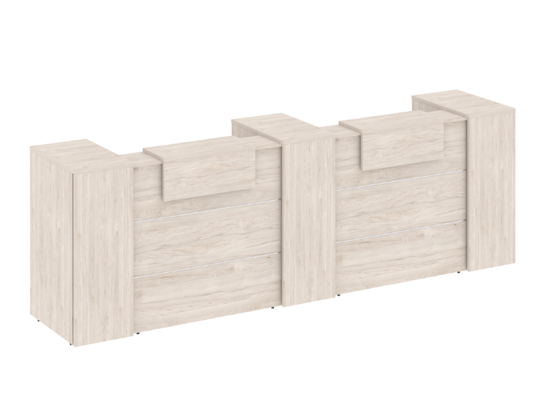 Ресепшн «Оникс» — это стильное решение для вашего офиса! Продукт российского производства выполнен из качественного ЛДСП, толщина столешницы составляет надежные 36 мм, каркас и фасады имеют толщину 18 мм. Современный дизайн подчеркнет престиж компании и создаст приятное впечатление у посетителей. Прочность конструкции обеспечивает долговечность использования. Идеально подходит как для небольших компаний, так и крупных организаций. Приобретая данный ресепшн, вы выбираете качество и надежность!