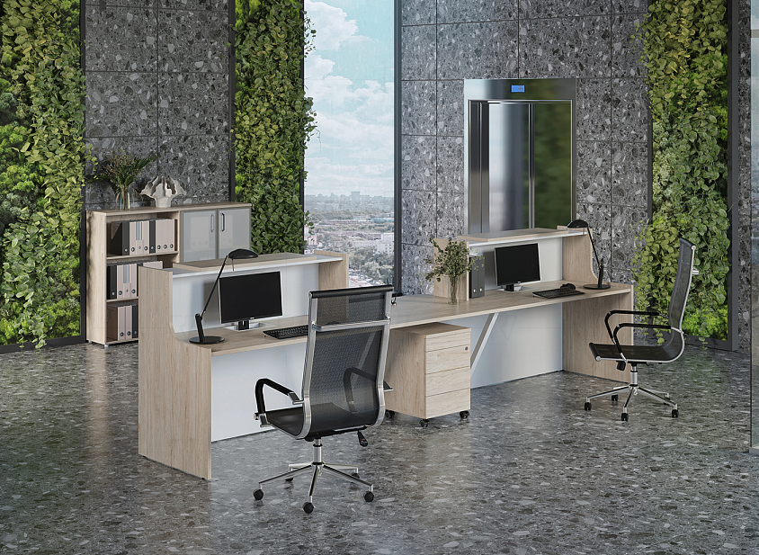 Ресепшн «Оникс» — это стильное решение для вашего офиса! Продукт российского производства выполнен из качественного ЛДСП, толщина столешницы составляет надежные 36 мм, каркас и фасады имеют толщину 18 мм. Современный дизайн подчеркнет престиж компании и создаст приятное впечатление у посетителей. Прочность конструкции обеспечивает долговечность использования. Идеально подходит как для небольших компаний, так и крупных организаций. Приобретая данный ресепшн, вы выбираете качество и надежность!