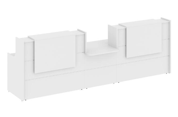 Ресепшн «Оникс» — это стильное решение для вашего офиса! Продукт российского производства выполнен из качественного ЛДСП, толщина столешницы составляет надежные 36 мм, каркас и фасады имеют толщину 18 мм. Современный дизайн подчеркнет престиж компании и создаст приятное впечатление у посетителей. Прочность конструкции обеспечивает долговечность использования. Идеально подходит как для небольших компаний, так и крупных организаций. Приобретая данный ресепшн, вы выбираете качество и надежность!