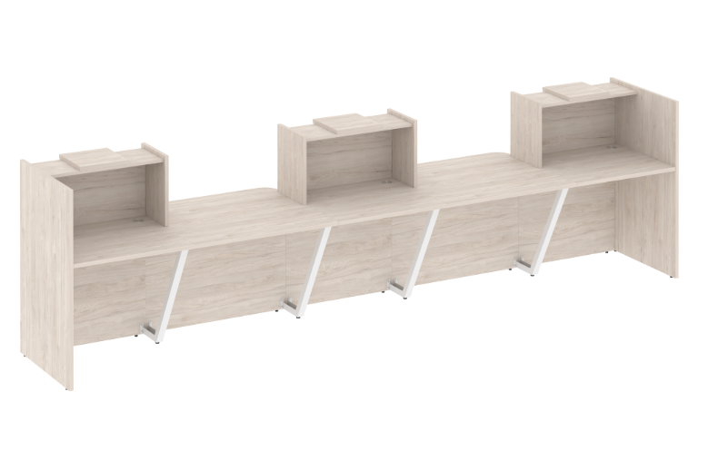 Ресепшн «Оникс» — это стильное решение для вашего офиса! Продукт российского производства выполнен из качественного ЛДСП, толщина столешницы составляет надежные 36 мм, каркас и фасады имеют толщину 18 мм. Современный дизайн подчеркнет престиж компании и создаст приятное впечатление у посетителей. Прочность конструкции обеспечивает долговечность использования. Идеально подходит как для небольших компаний, так и крупных организаций. Приобретая данный ресепшн, вы выбираете качество и надежность!