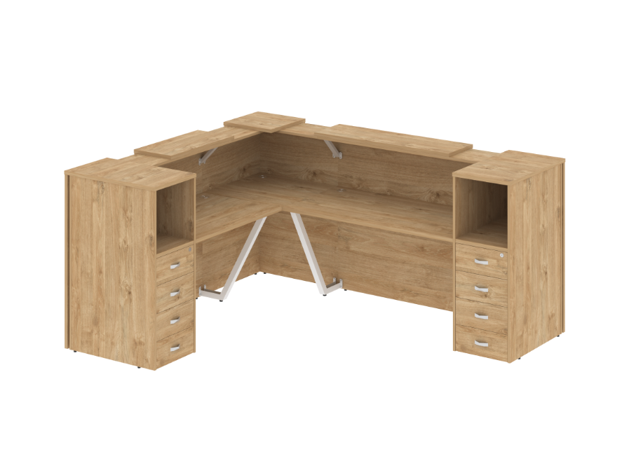 Ресепшн «Оникс» — это стильное решение для вашего офиса! Продукт российского производства выполнен из качественного ЛДСП, толщина столешницы составляет надежные 36 мм, каркас и фасады имеют толщину 18 мм. Современный дизайн подчеркнет престиж компании и создаст приятное впечатление у посетителей. Прочность конструкции обеспечивает долговечность использования. Идеально подходит как для небольших компаний, так и крупных организаций. Приобретая данный ресепшн, вы выбираете качество и надежность!