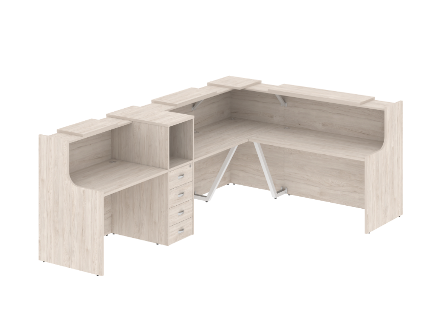 Ресепшн «Оникс» — это стильное решение для вашего офиса! Продукт российского производства выполнен из качественного ЛДСП, толщина столешницы составляет надежные 36 мм, каркас и фасады имеют толщину 18 мм. Современный дизайн подчеркнет престиж компании и создаст приятное впечатление у посетителей. Прочность конструкции обеспечивает долговечность использования. Идеально подходит как для небольших компаний, так и крупных организаций. Приобретая данный ресепшн, вы выбираете качество и надежность!