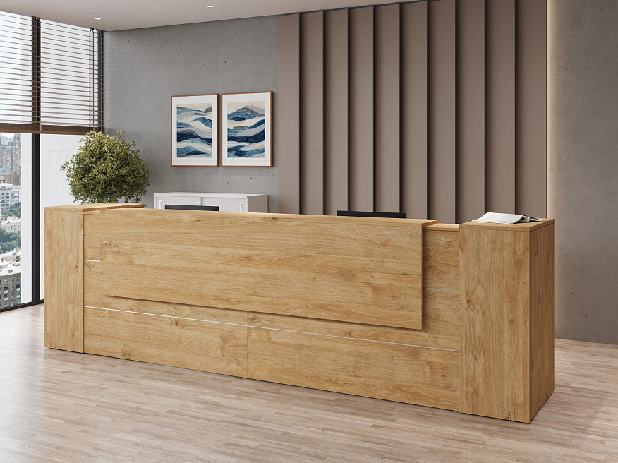 Ресепшн «Оникс» — это стильное решение для вашего офиса! Продукт российского производства выполнен из качественного ЛДСП, толщина столешницы составляет надежные 36 мм, каркас и фасады имеют толщину 18 мм. Современный дизайн подчеркнет престиж компании и создаст приятное впечатление у посетителей. Прочность конструкции обеспечивает долговечность использования. Идеально подходит как для небольших компаний, так и крупных организаций. Приобретая данный ресепшн, вы выбираете качество и надежность!