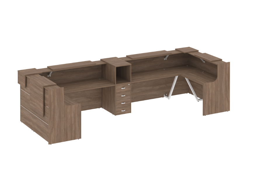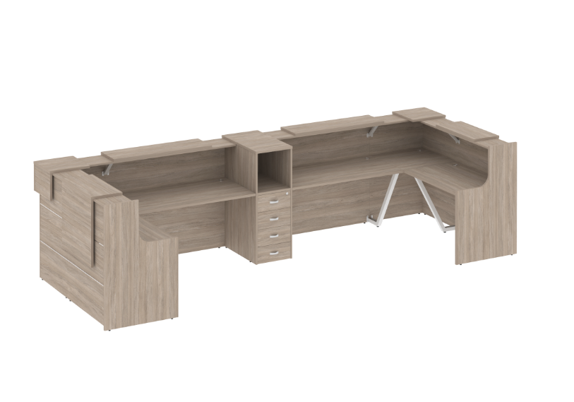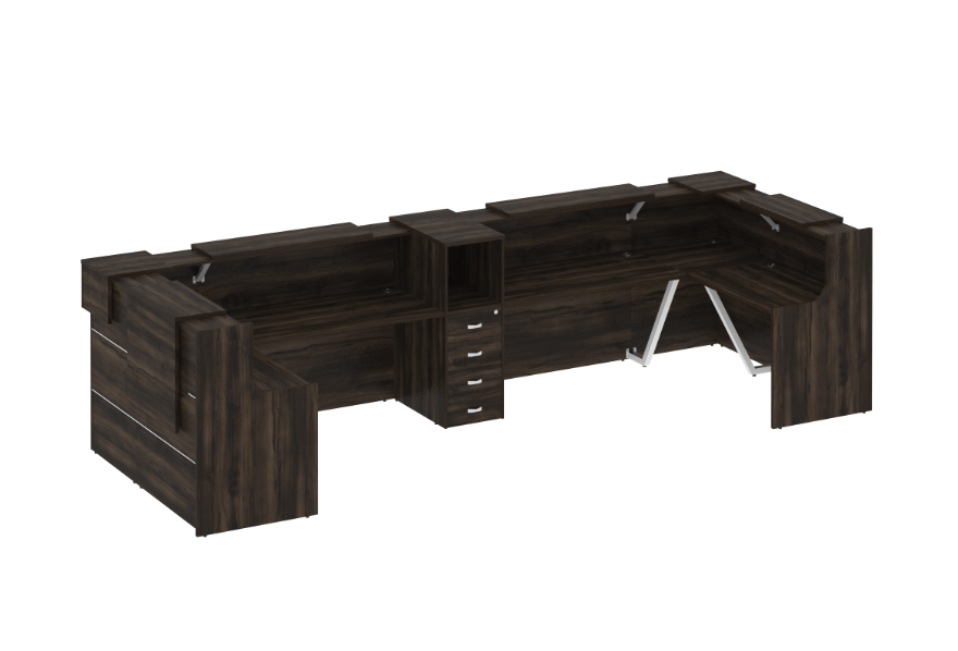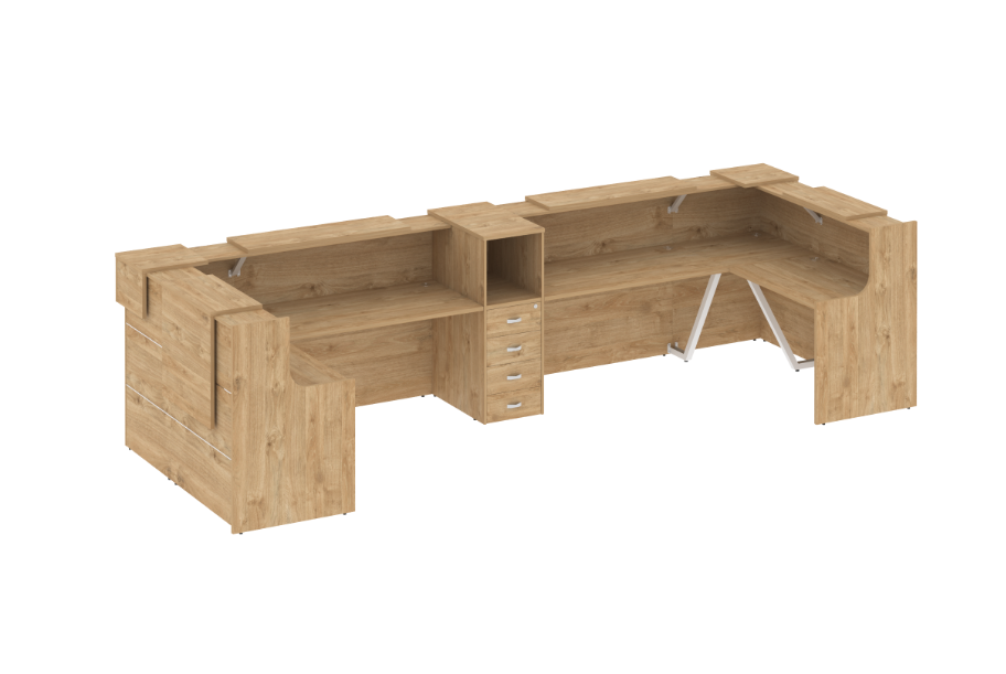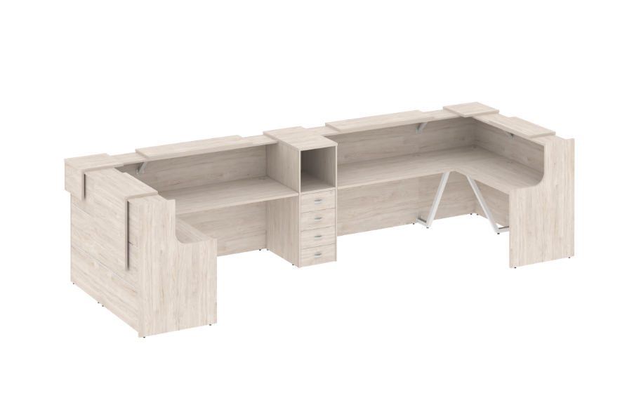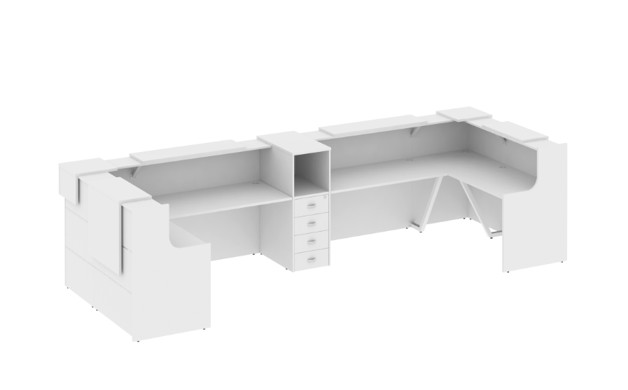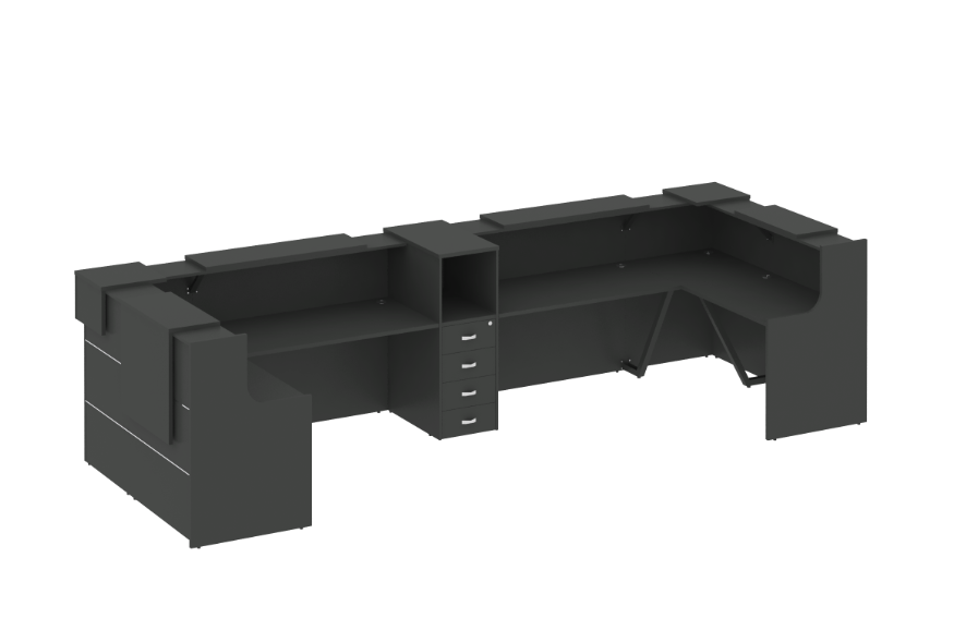 Ресепшн «Оникс» — это стильное решение для вашего офиса! Продукт российского производства выполнен из качественного ЛДСП, толщина столешницы составляет надежные 36 мм, каркас и фасады имеют толщину 18 мм. Современный дизайн подчеркнет престиж компании и создаст приятное впечатление у посетителей. Прочность конструкции обеспечивает долговечность использования. Идеально подходит как для небольших компаний, так и крупных организаций. Приобретая данный ресепшн, вы выбираете качество и надежность!