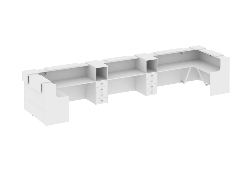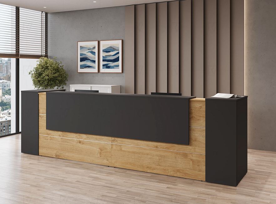 Ресепшн «Оникс» — это стильное решение для вашего офиса! Продукт российского производства выполнен из качественного ЛДСП, толщина столешницы составляет надежные 36 мм, каркас и фасады имеют толщину 18 мм. Современный дизайн подчеркнет престиж компании и создаст приятное впечатление у посетителей. Прочность конструкции обеспечивает долговечность использования. Идеально подходит как для небольших компаний, так и крупных организаций. Приобретая данный ресепшн, вы выбираете качество и надежность!