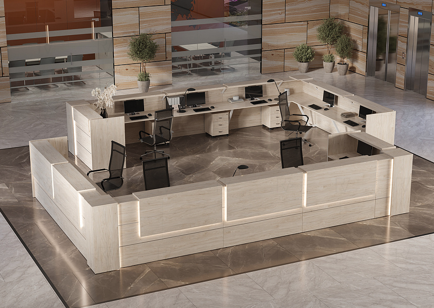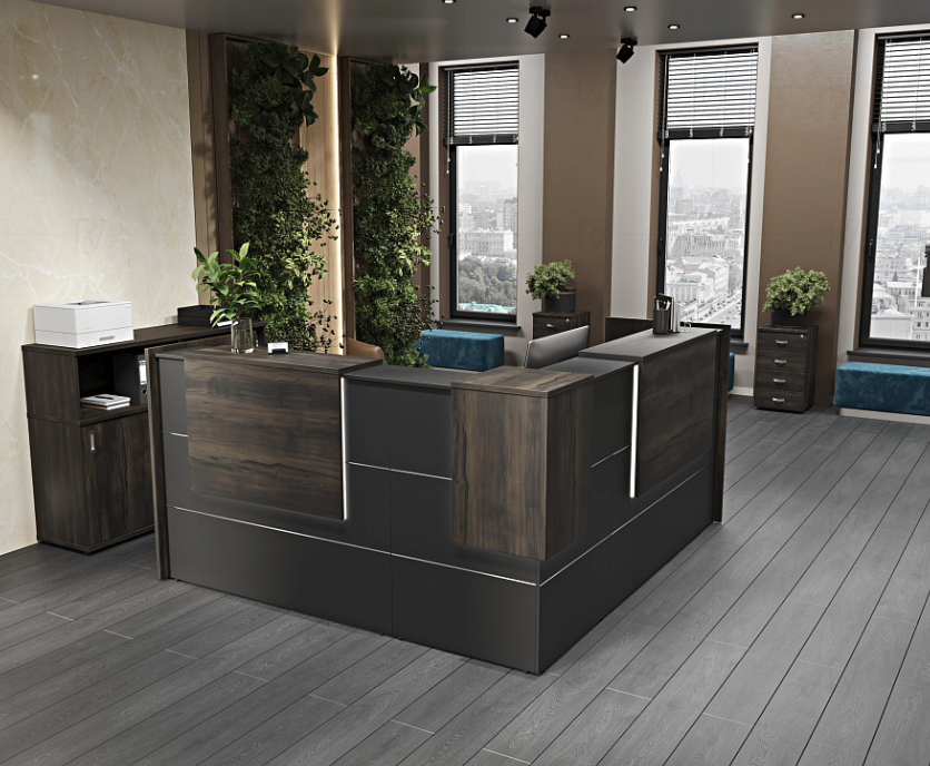 Ресепшн «Оникс» — это стильное решение для вашего офиса! Продукт российского производства выполнен из качественного ЛДСП, толщина столешницы составляет надежные 36 мм, каркас и фасады имеют толщину 18 мм. Современный дизайн подчеркнет престиж компании и создаст приятное впечатление у посетителей. Прочность конструкции обеспечивает долговечность использования. Идеально подходит как для небольших компаний, так и крупных организаций. Приобретая данный ресепшн, вы выбираете качество и надежность!