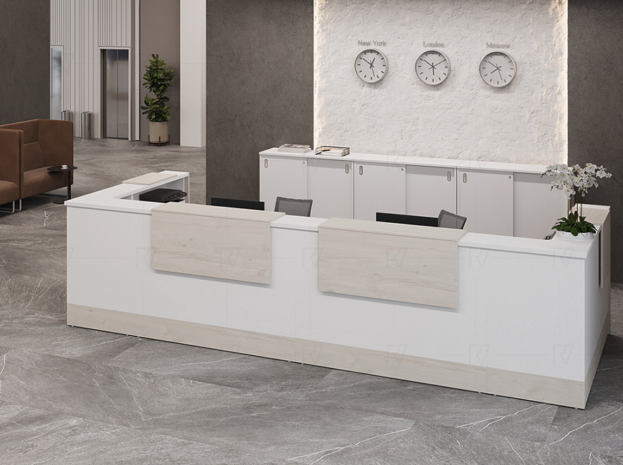 Ресепшен «Стайл» — элегантное решение для вашего офиса! Изготовлен из качественного российского ЛДСП толщиной фасада и каркаса 18 мм, столешница – 36 мм. Стильный дизайн подчеркивает статус компании, а прочная конструкция обеспечивает многолетний срок службы. Подходит как малый бизнес так и крупные корпорации. Создайте первое приятное впечатление о вашей организации вместе с ресепшеном «Стайл».