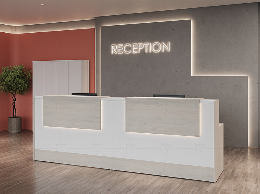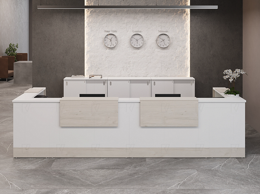 Ресепшен «Стайл» — элегантное решение для вашего офиса! Изготовлен из качественного российского ЛДСП толщиной фасада и каркаса 18 мм, столешница – 36 мм. Стильный дизайн подчеркивает статус компании, а прочная конструкция обеспечивает многолетний срок службы. Подходит как малый бизнес так и крупные корпорации. Создайте первое приятное впечатление о вашей организации вместе с ресепшеном «Стайл».